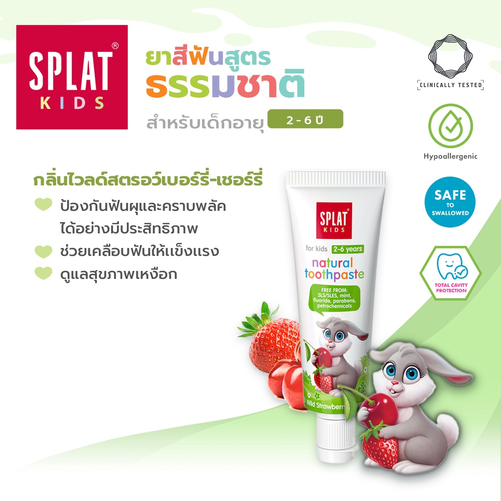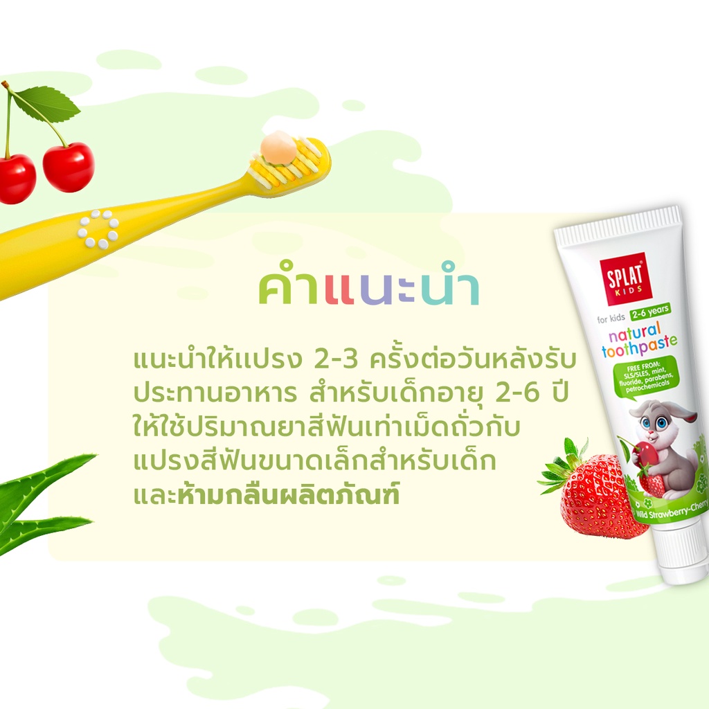 SPLAT Kids ยาสีฟัน ไม่มีฟลูออไรด์และมิ้นต์ เด็กอายุ 2-6 ปี กลิ่นไวด์สตรอว์เบอร์รี่-เชอร์รี่ (20ml)