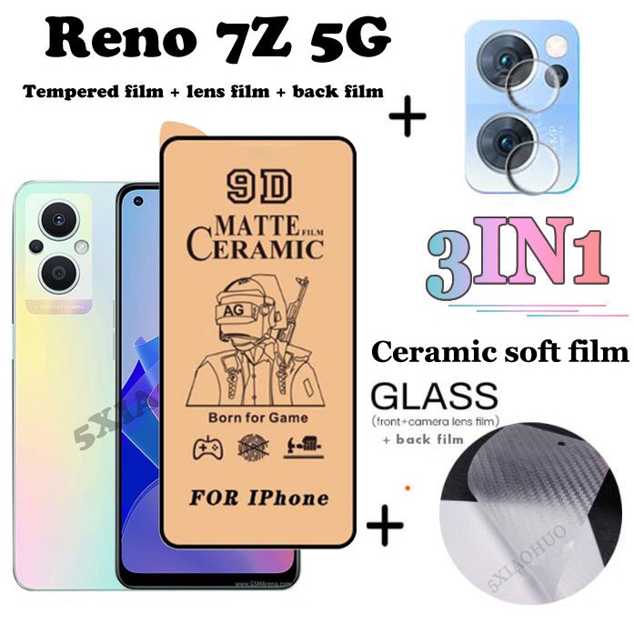 (3 In 1) ฟิล์มกระจกนิรภัยเซรามิค กันรอยหน้าจอ ฟิล์มกล้อง ฟิล์มด้านหลัง แบบนิ่ม สําหรับ OPPO Reno 7Z 8Z 6Z 7Pro 5G Reno 7 Pro 6 5 5G