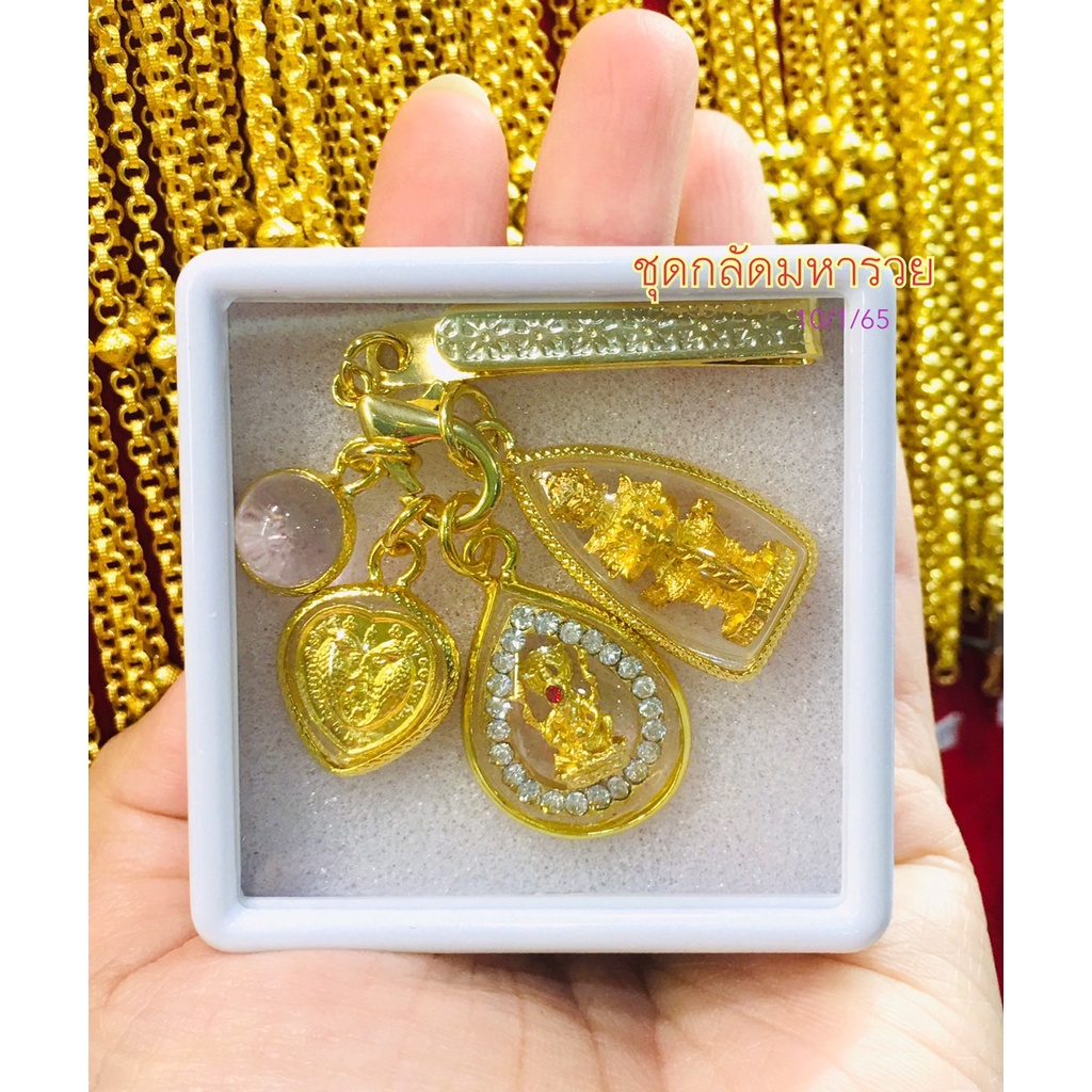 Tongtaegold ชุดกลัดมหารวย ท้าวเวสสุวรรณ+พระพิฆเนศ+สาริกา+ลูกแก้วพญานาค