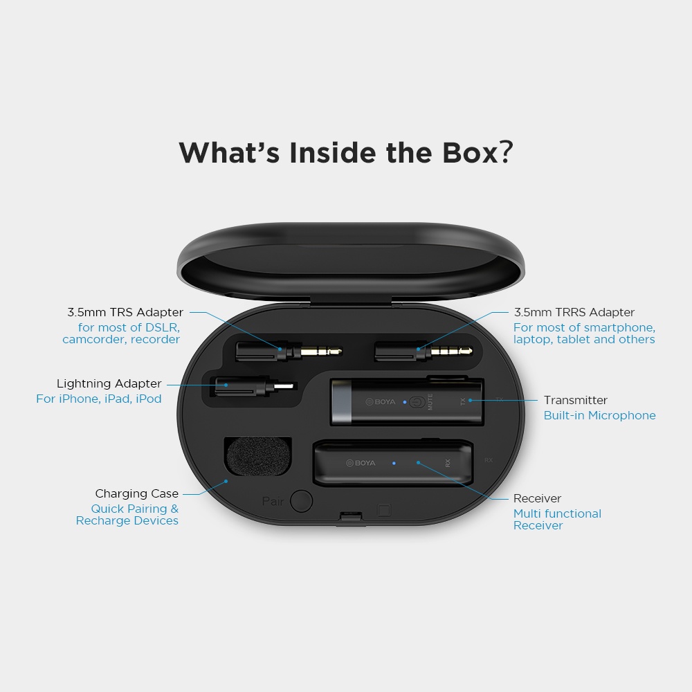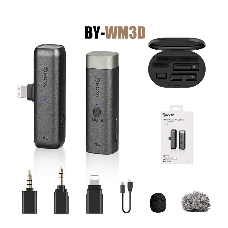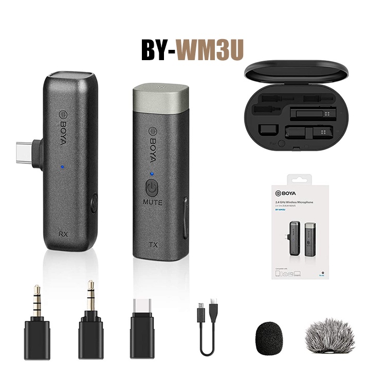 BOYA BY-WM3 D/U ไมโครโฟนไร้สาย พร้อมเคสชาร์จ สําหรับบันทึกวิดีโอ เสียบแล้วใช้งานได้เลย