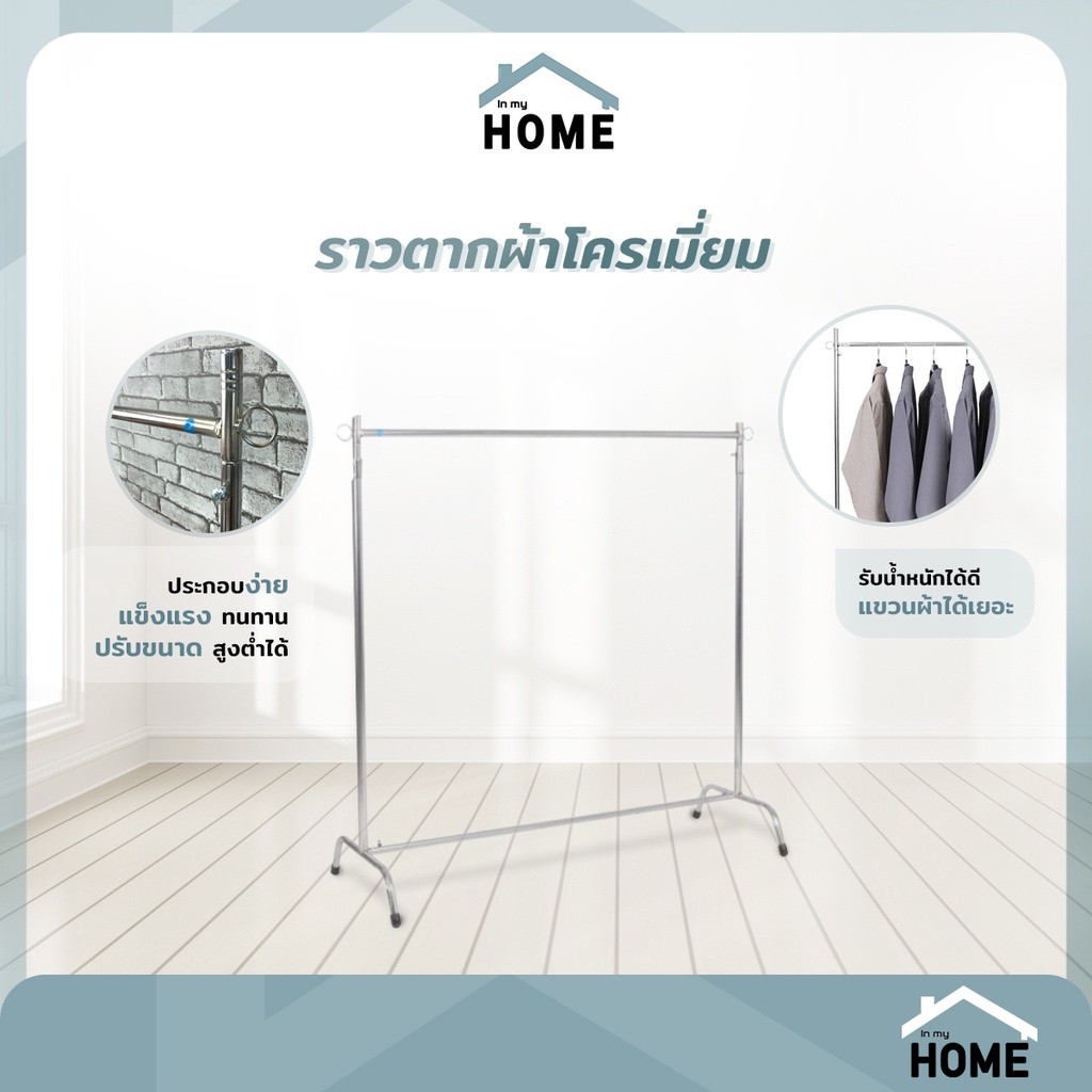ราวตากผ้าโครเมี่ยมInmyhome กว้าง 1ม. ปรับระดับสูง-ต่ำได้ แข็งแรง ทนทาน
