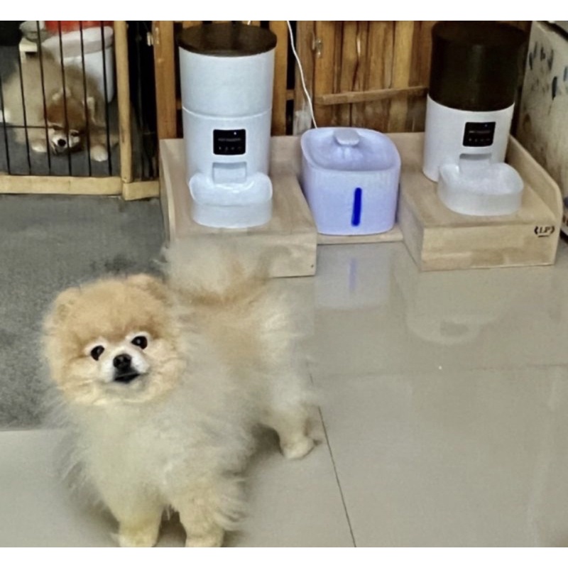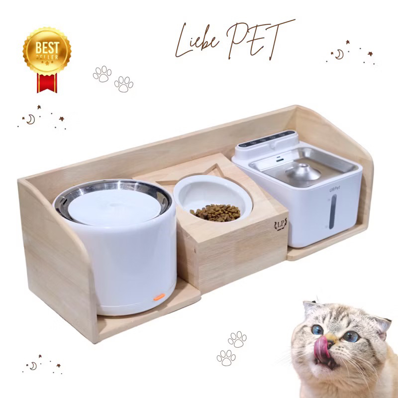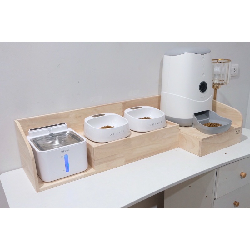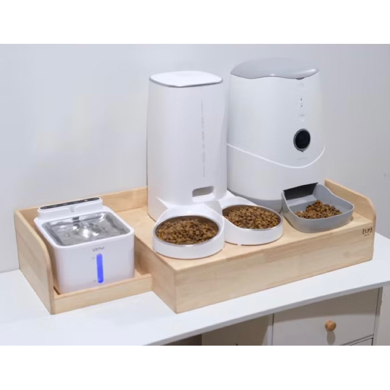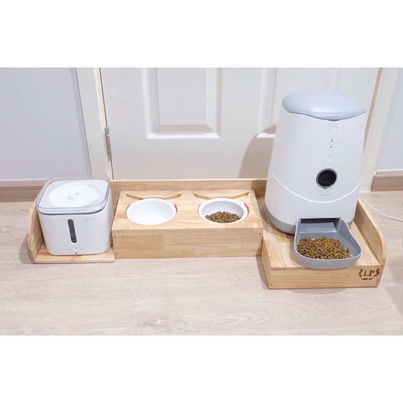 LP1 โต๊ะอาหารสัตว์เลี้ยง พร้อมถ้วยเซรามิก วางน้ำพุ เครื่องอัตโนมัติ ได้ทุกรุ่นเช่น Petkit URPET สำหรับแมว สุนัข ไม้เกรดA
