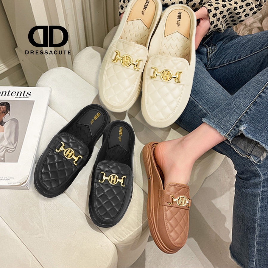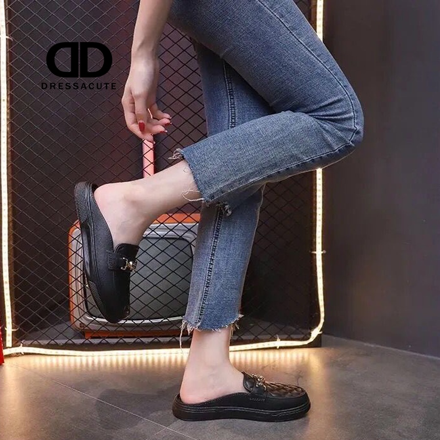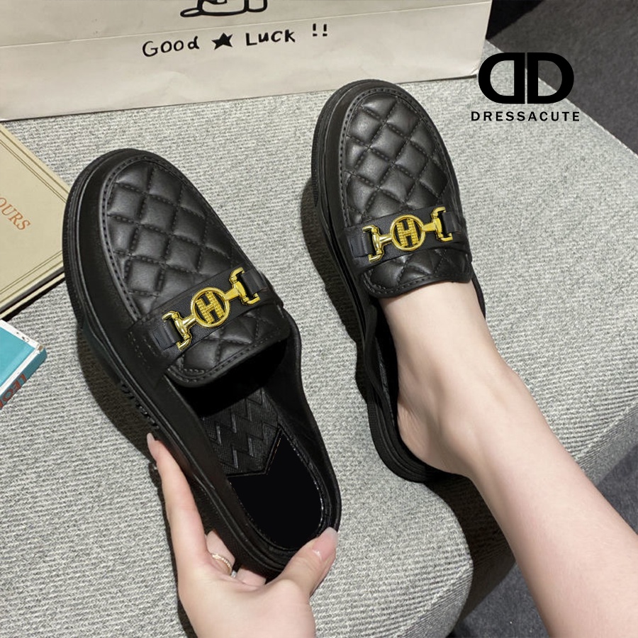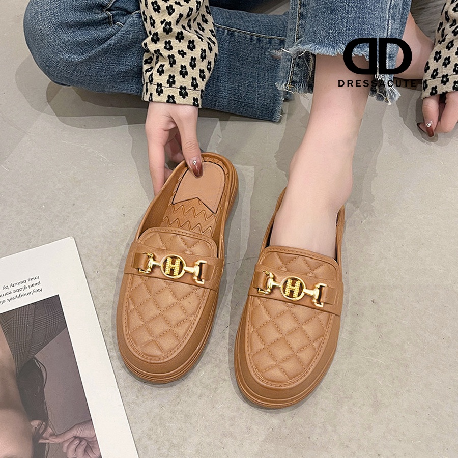 ❤️ 𝐍𝐞𝐰 𝐀𝐫𝐫𝐢𝐯𝐚𝐥 ✨ Size 37-41 🧡 6869 รองเท้ายางเปิดส้น สไตล์โลฟเฟอร์ แต่งอะไหล่สีทอง