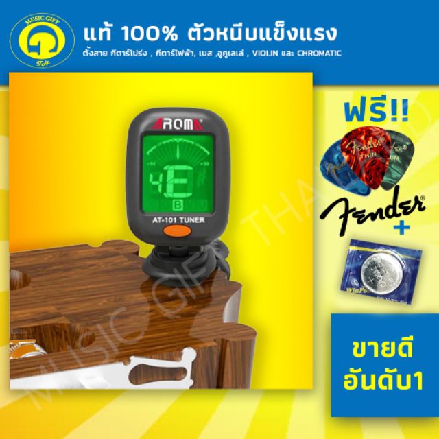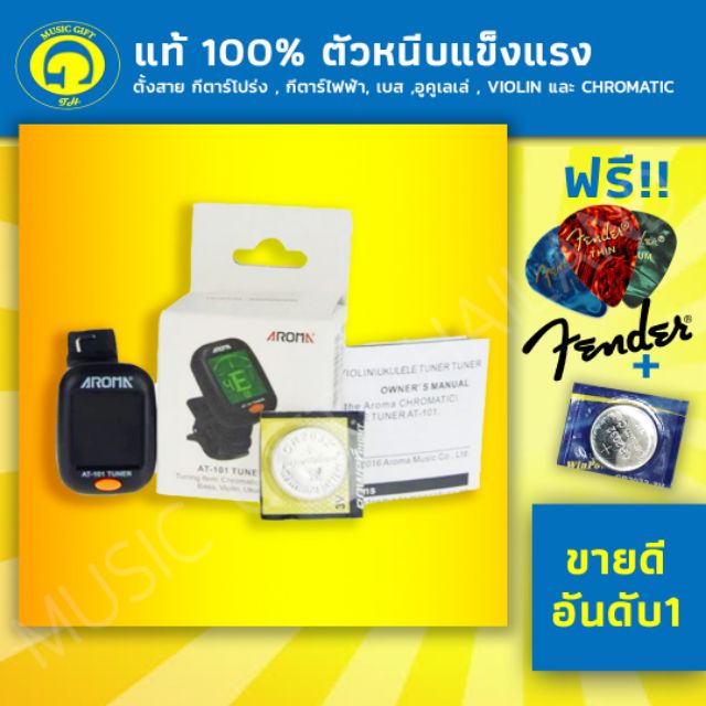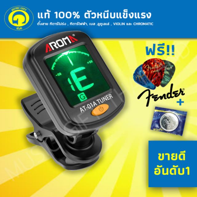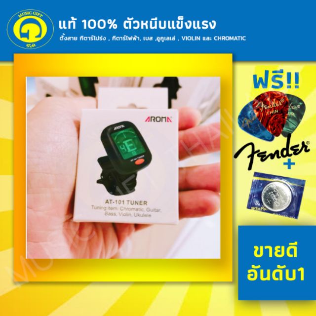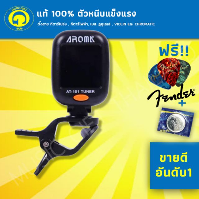 AROMA AT101 เครื่องตั้งสายกีตาร์,เบส,อูคูเลเล่,ไวโอลิน,Chromatic ขนาดเล็กที่หนีบแข็งแรง ฟรีปิ๊ก Fender 3ชิ้นFree สุดคุ้ม