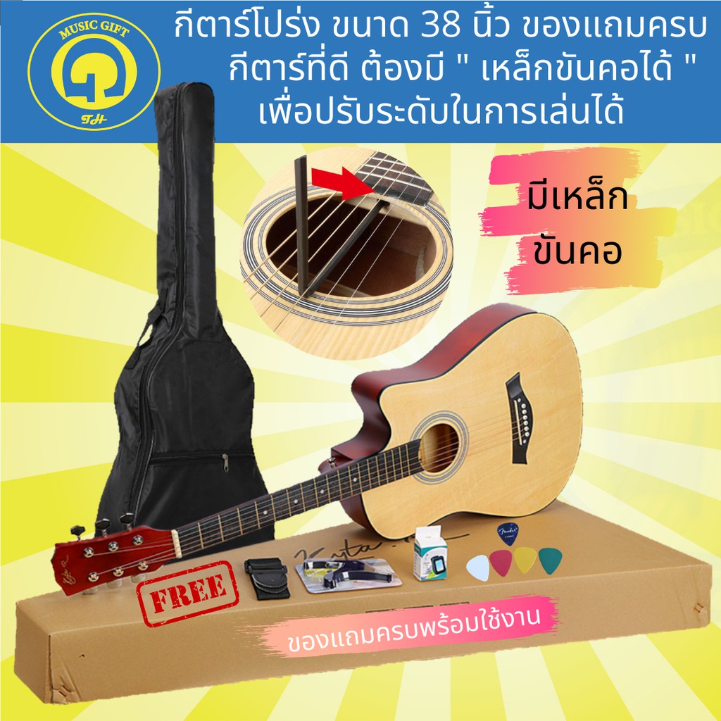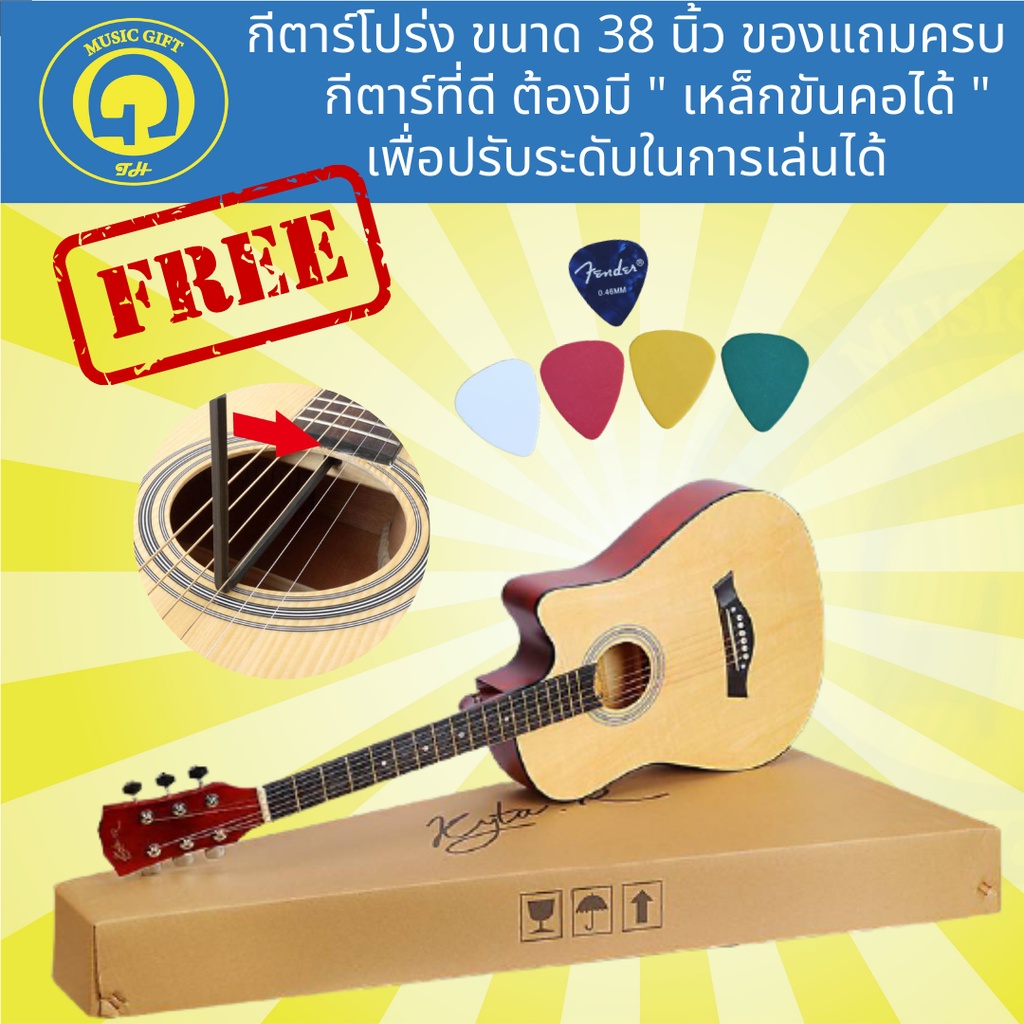 กีตาร์โปร่ง ขนาด 38 นิ้ว ยี่ห้อ Kyta.R รุ่น Q45 มีเหล็กขันคอ ลูกบิดเหล็ก พร้อมของแถมจุกๆ ทัชชิ่งเล่นง่าย เก็บเงินปลายทาง
