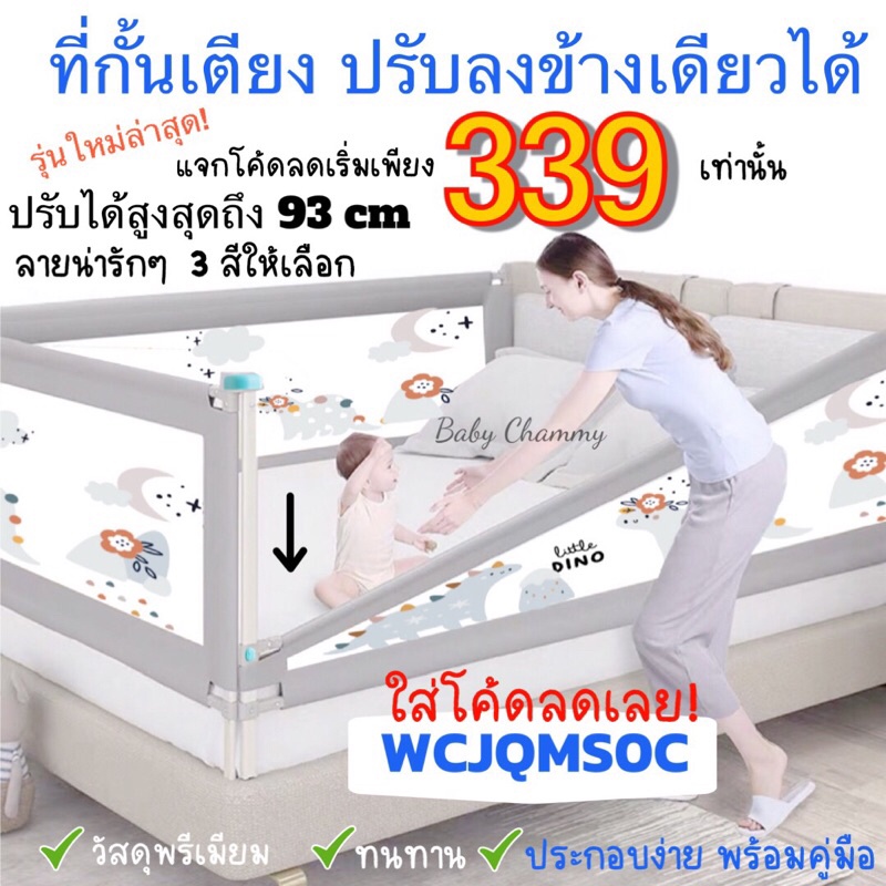 ที่กั้นเตียงปรับลงข้างเดียวได้ ลายน่ารัก ทนทาน มีครบทุกขนาดเตียง Baby Chammy
