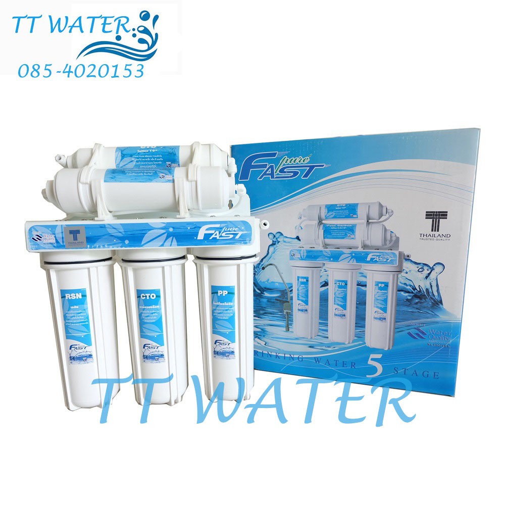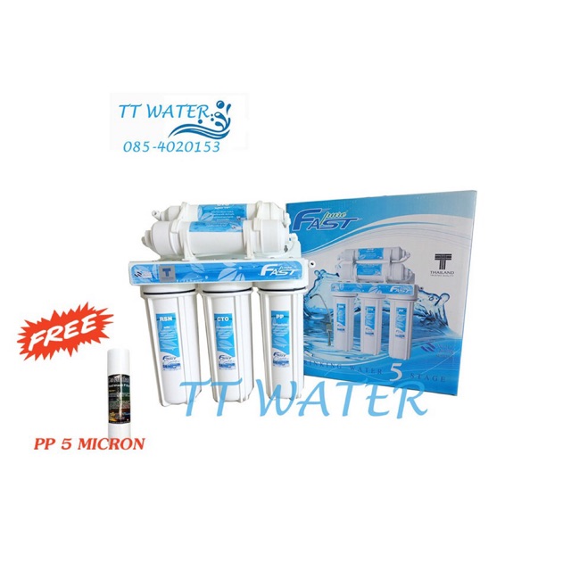 FAST PURE เครื่องกรองน้ำ 5 ขั้นตอน พร้อมอุปกรณ์ติดตั้งครบชุด แถมฟรี ไส้กรอง PP 5 MICRON x 1 ไส้