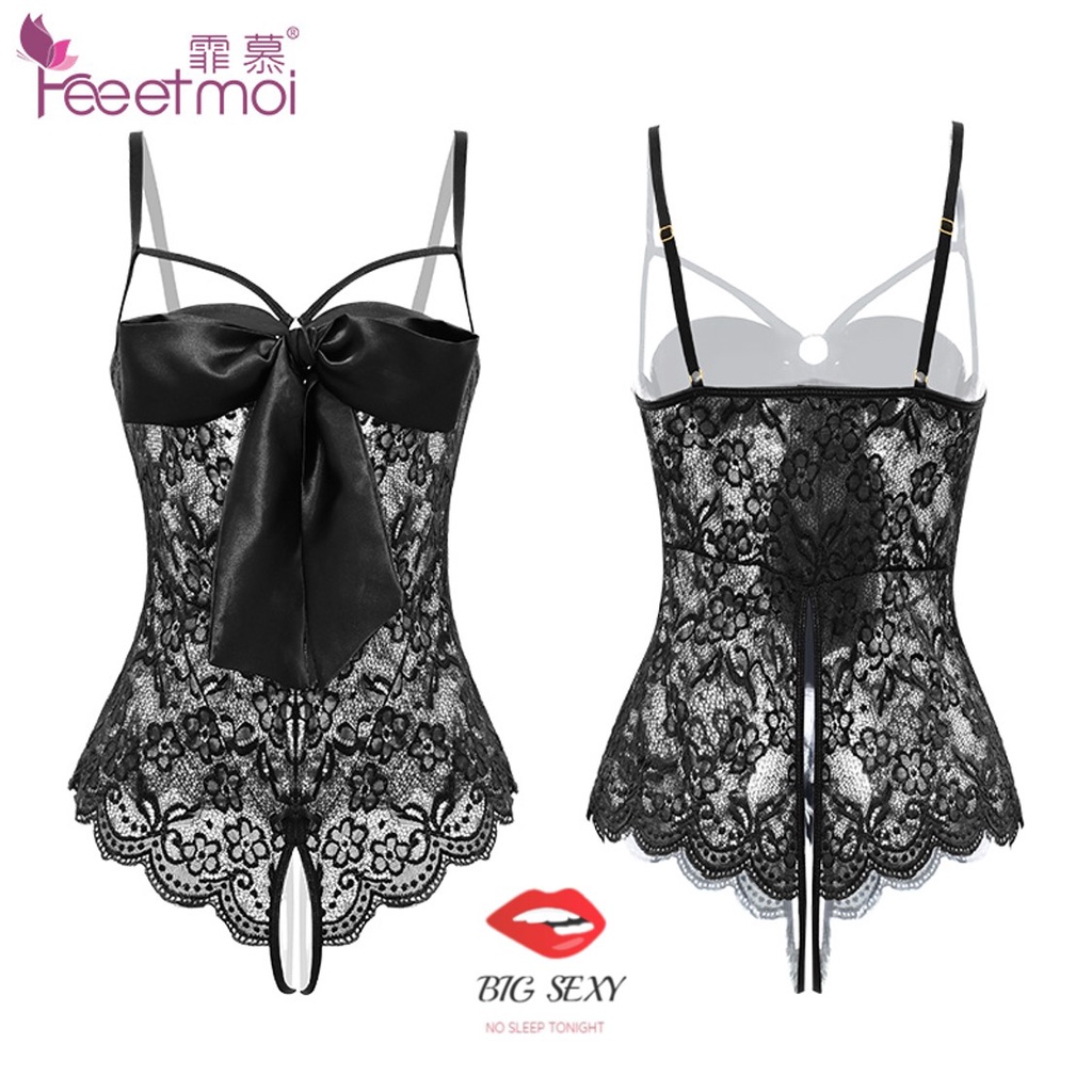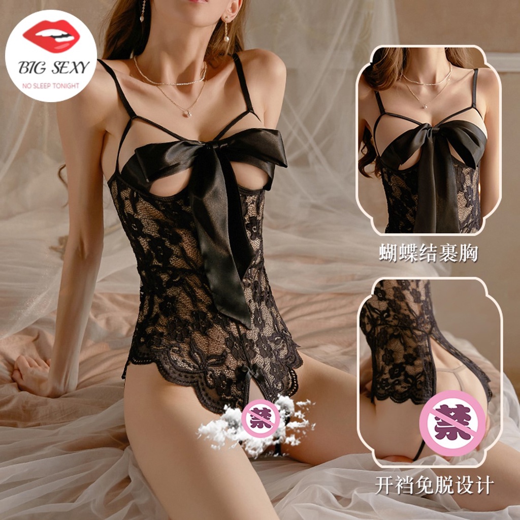 ชุดบอดี้สูท เว้าหน้าอก แบบริบบิ้นผ้าซาติน เปิดเป้า มีไซต์ M-XXL S-606 ขายส่ง