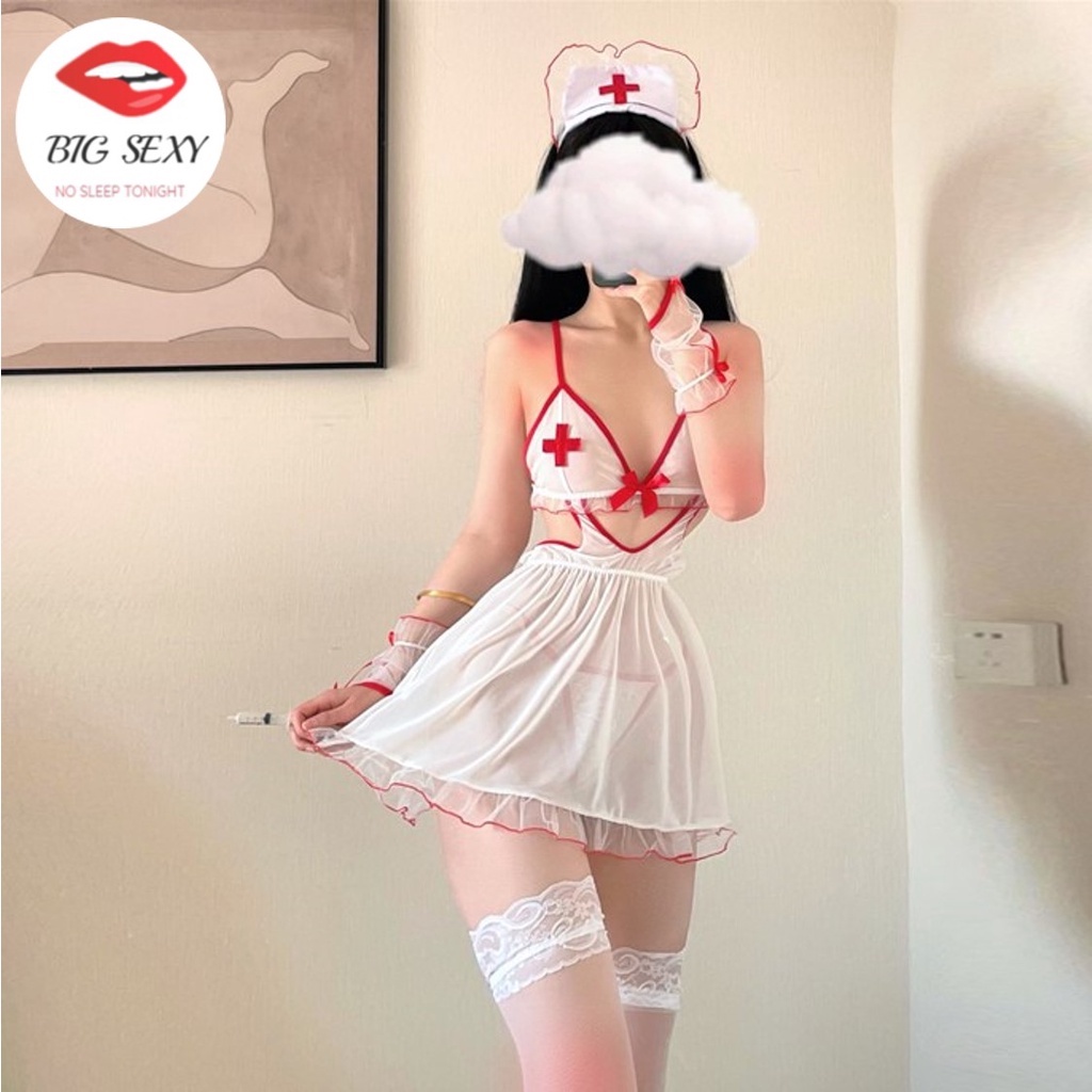 ชุดคอสเพลย์ ชุดพยาบาล งานไซต์จริง M-XL ซีทรูสายเดี่ยวผูกหลัง 💥มีแพคสำหรับขายหน้าร้าน S-818