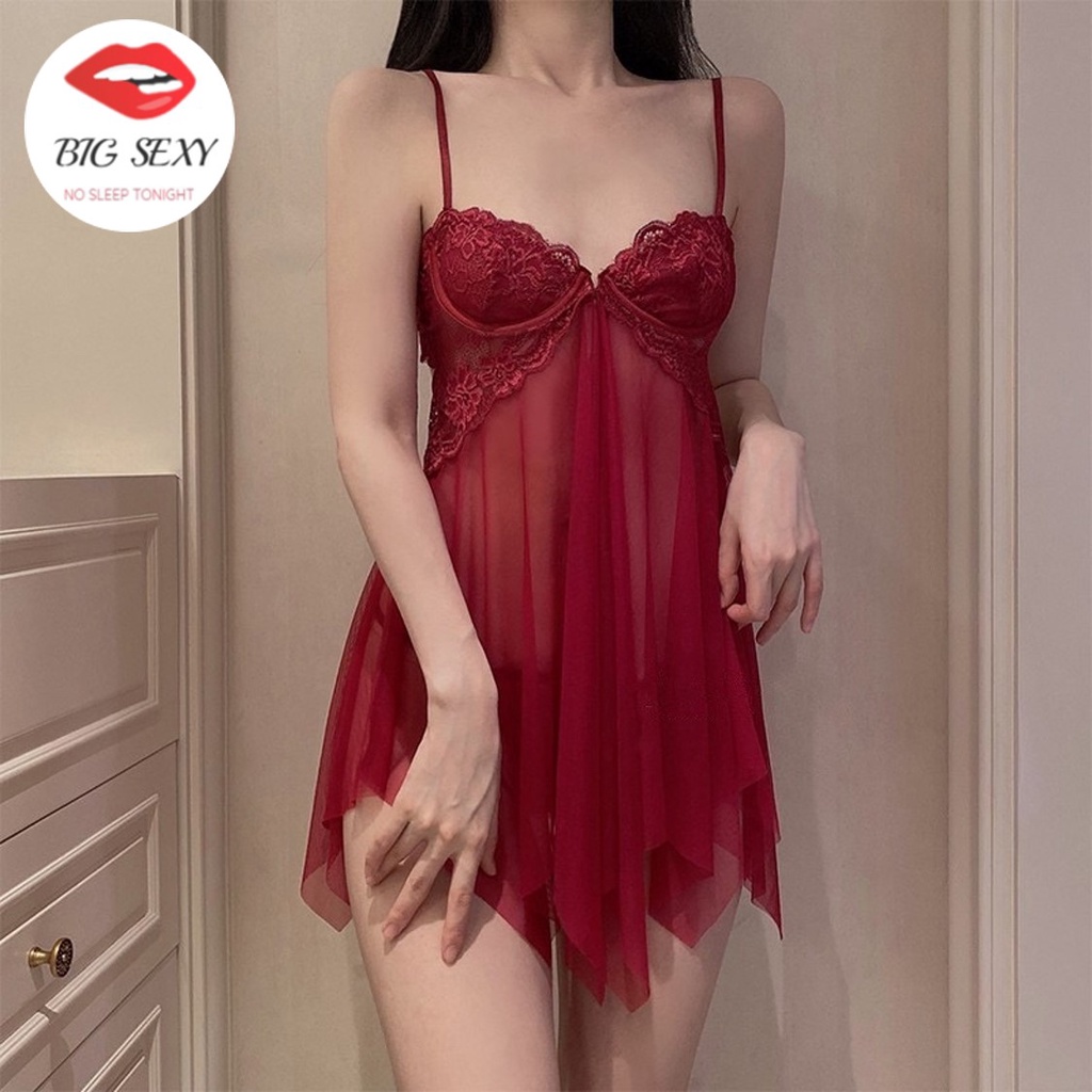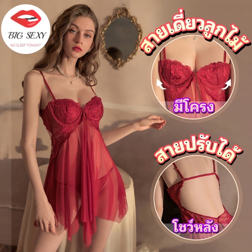 ชุดนอน ชุดนอนซีทรู โครงดันทรง ตะขอหน้า 💥มีไซต์ใหญ่ S-XL ได้ถึง 75kg S-851