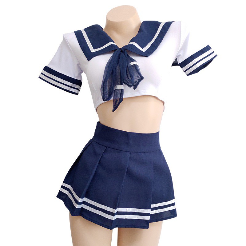 ชุดนักเรียนสาวญี่ปุ่นเนคไทผ้าซีทรูสีน้ำเงิน กระโปรงสั้นสีน้ำเงินเข้ม ชุดนอนไม่ได้นอน ได้ถึง 80 kg S-028 ราคาส่ง