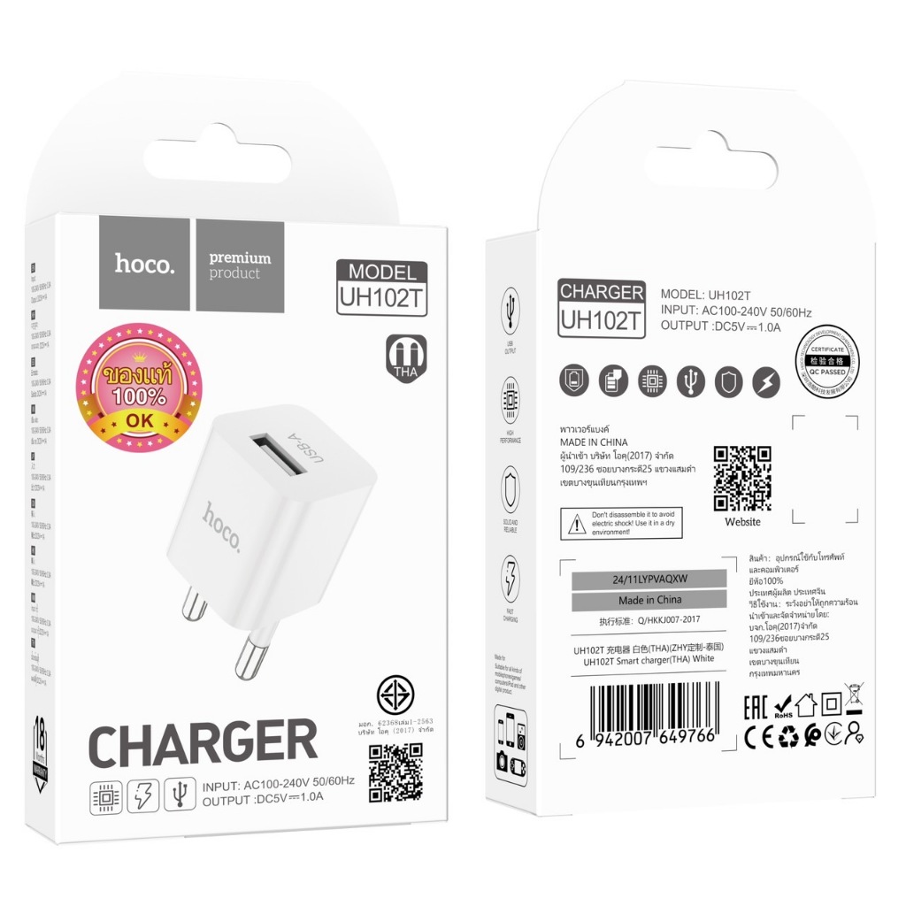 Hoco UH102T มีมอก. หัวชาร์จ 1 ช่อง USB จ่ายไฟ 1.0A เหมาะกับอุปกรณ์ทั่วไป หัวชาร์จ หูฟัง UH102 hc2