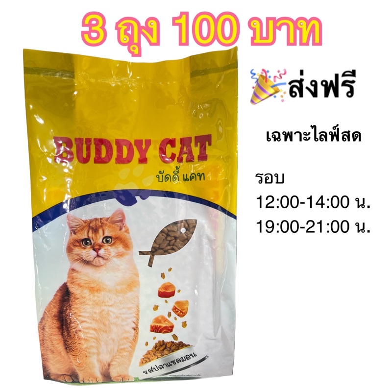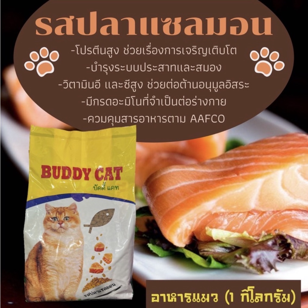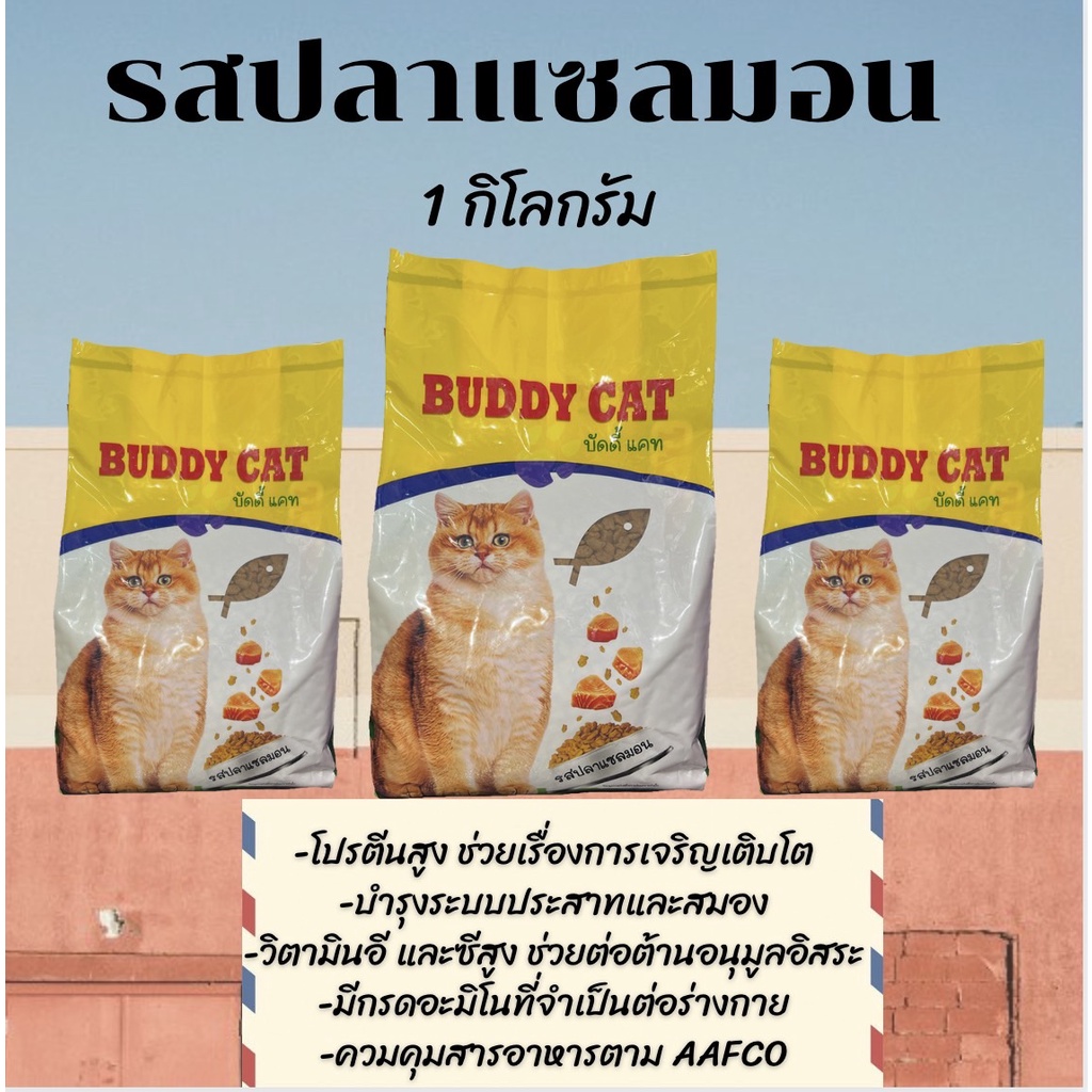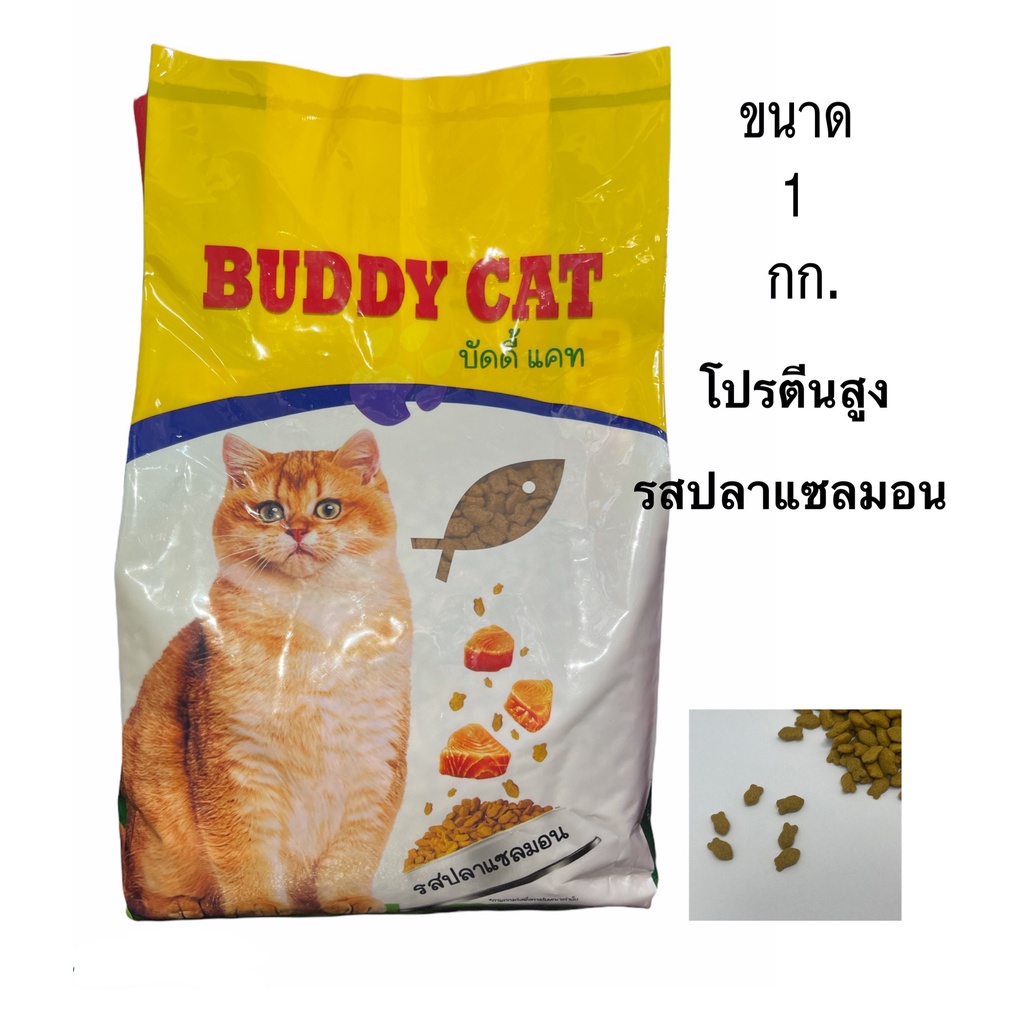 (ถุงเขียวเหลืองขนาด 1 กิโลกรัม) ไม่เค็ม อาหารแมว BUDDY CAT บัดดี้ แคท รสปลาแซลม่อน ควบคุมความเค็ม