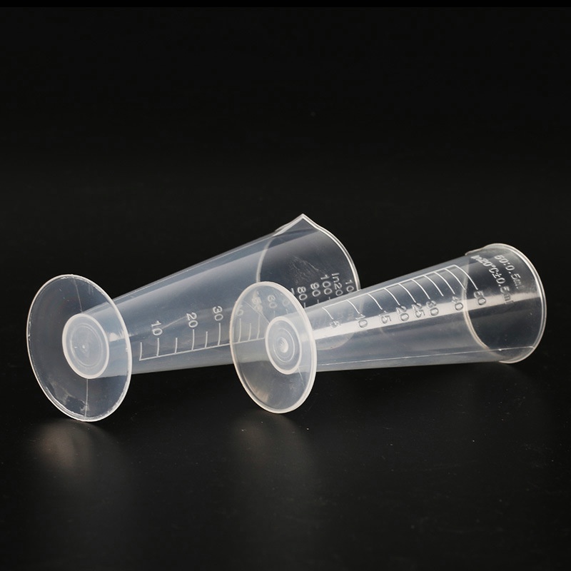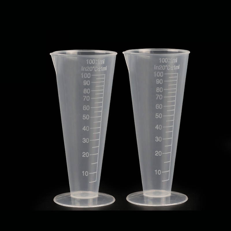พร้อมส่งราคาถูกถ้วยตวง100mlทรงกรวยConical Shapeพลาสติกทนความร้อนทนกรด-ด่างตั้งได้เทของเหลววัดระดับเช็คปริมาตรเทง่ายไม่หก