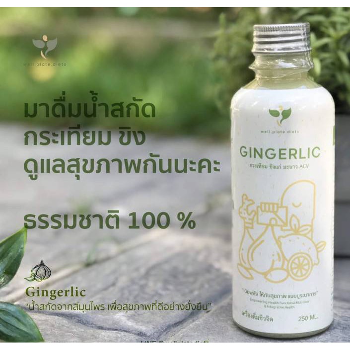 GINGERLIC น้ำกระเทียมขิงสกัด น้ำสมุนไพรสกัดเย็น กระเทียม ขิง มะนาว น้ำแอปเปิ้ลไซเดอร์ ปริมา ณ 250ml.