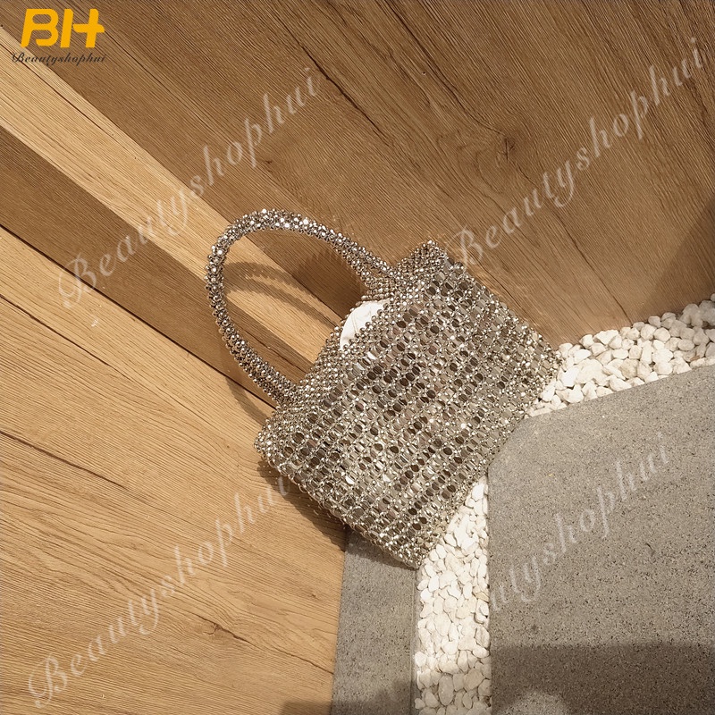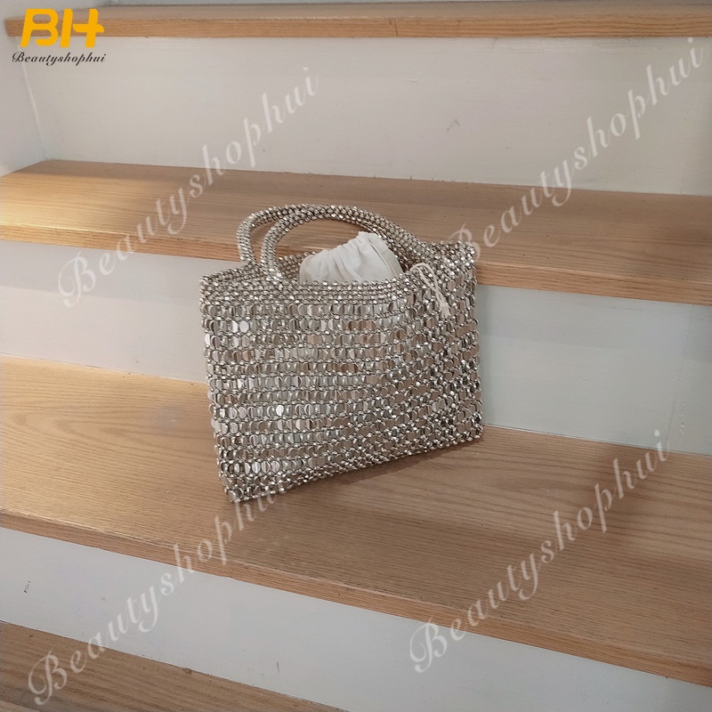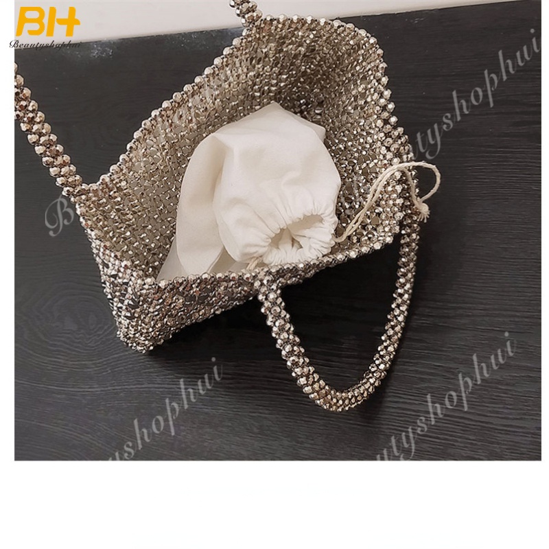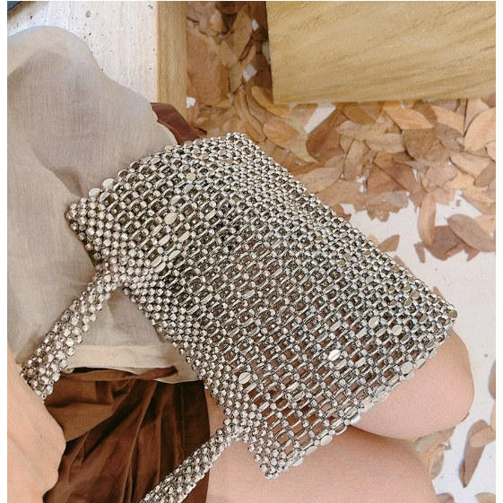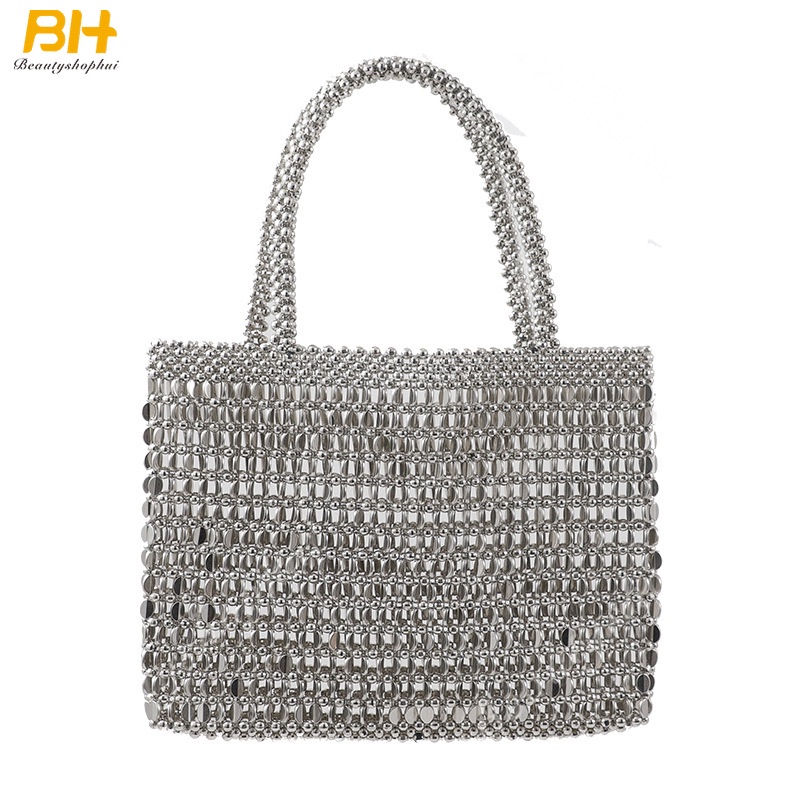 ทอลูกปัดกระเป๋าวินเทจโลหะถุงเลื่อมเพิร์ลกระเป๋าช้อปปิ้งกระเป๋าสะพาย