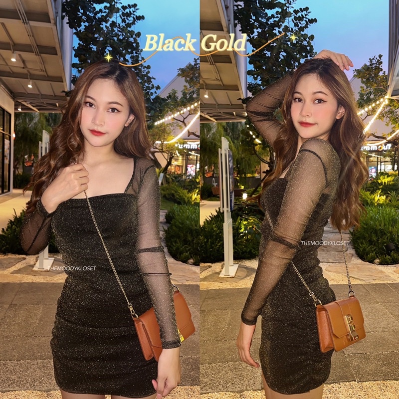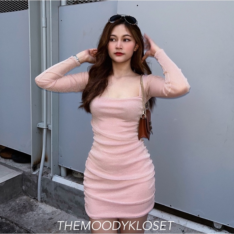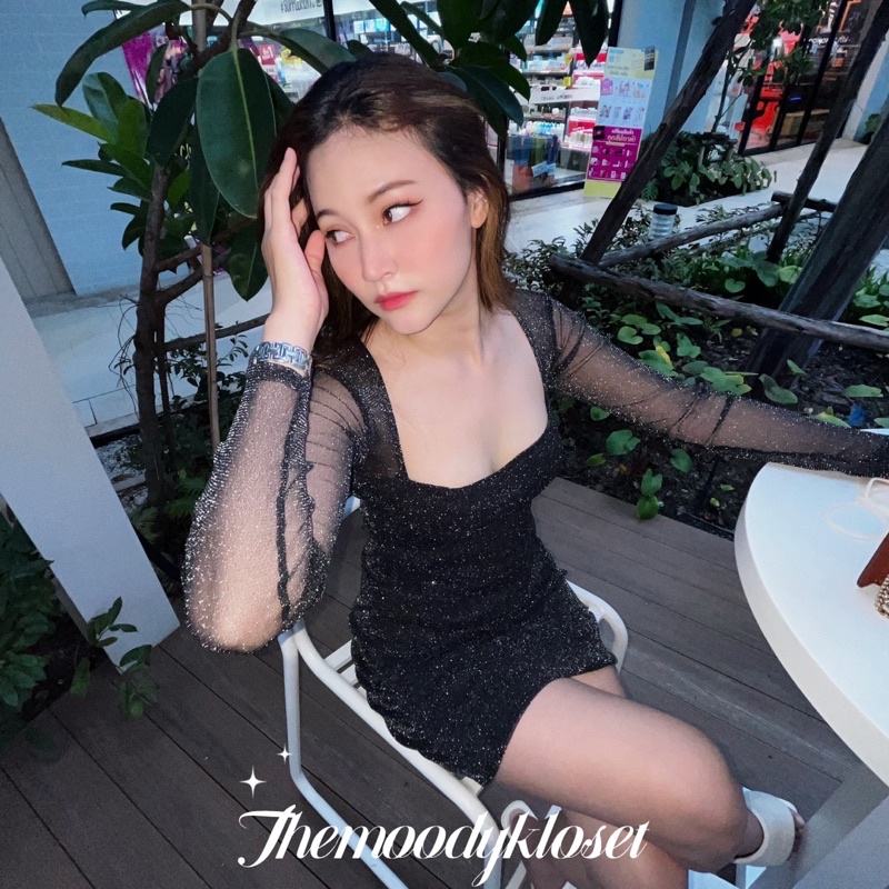 Richy Wink Dress เดรสแขนยาวผ้ามุ้งกลิตเตอร์ วิ้งตาแตก พรีเมี่ยมสุดๆ ซับใน ITY ทั้งตัว ผ้าไม่คัน