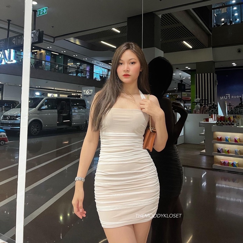 [THEMOODY] Alice Dress เดรสผ้ามุ้งคล้องคอ ผ้ามุ้งเกาหลี เก็บพุง ซับในITYทั้งตัว ฟรีไซส์ สูง155-175ใส่ได้ค่ะ