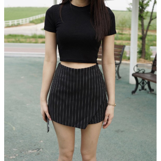 🔥ถูกมาก❗️เสื้อครอป คอเต่าแขนสั้น คอกลม ครอปเอวลอย