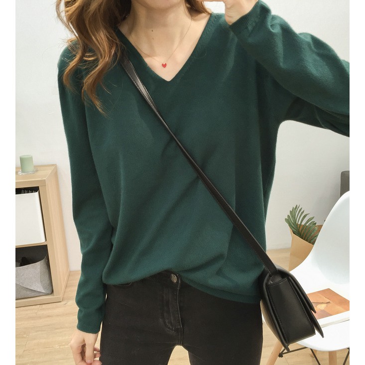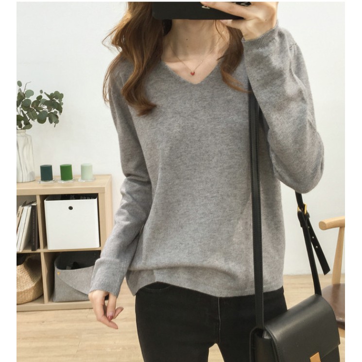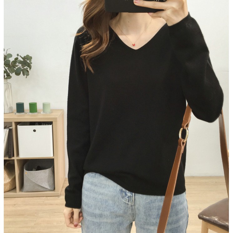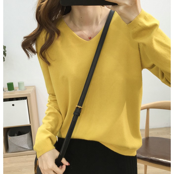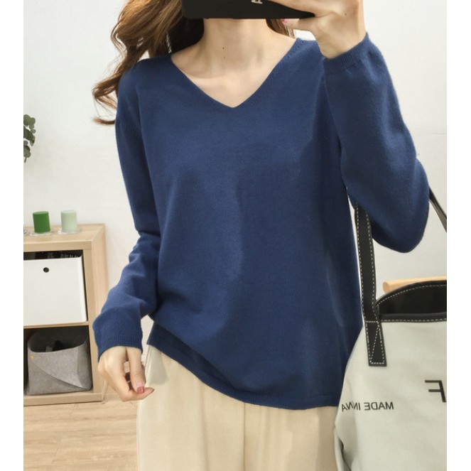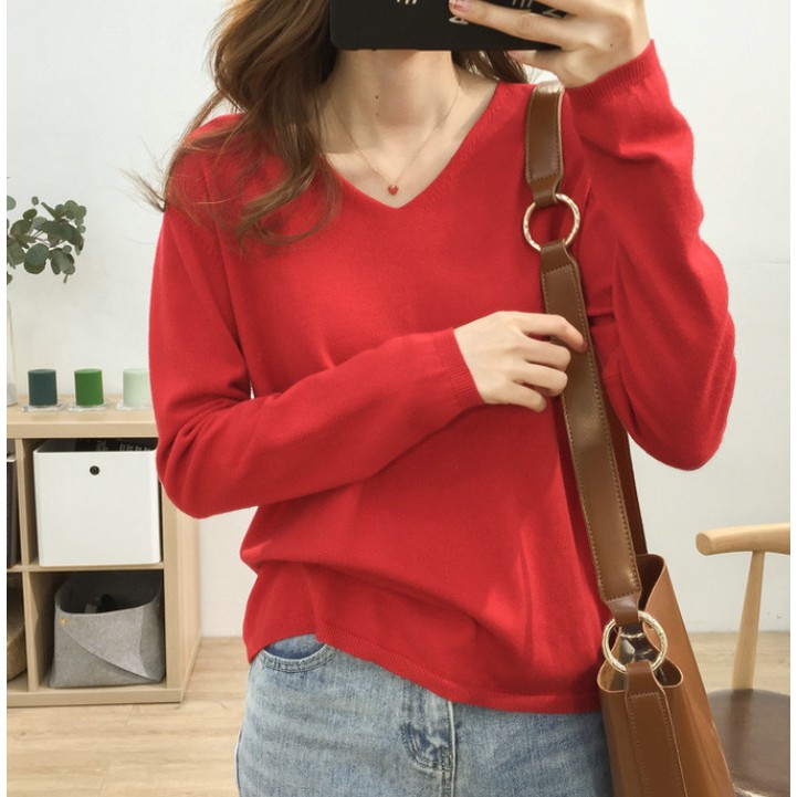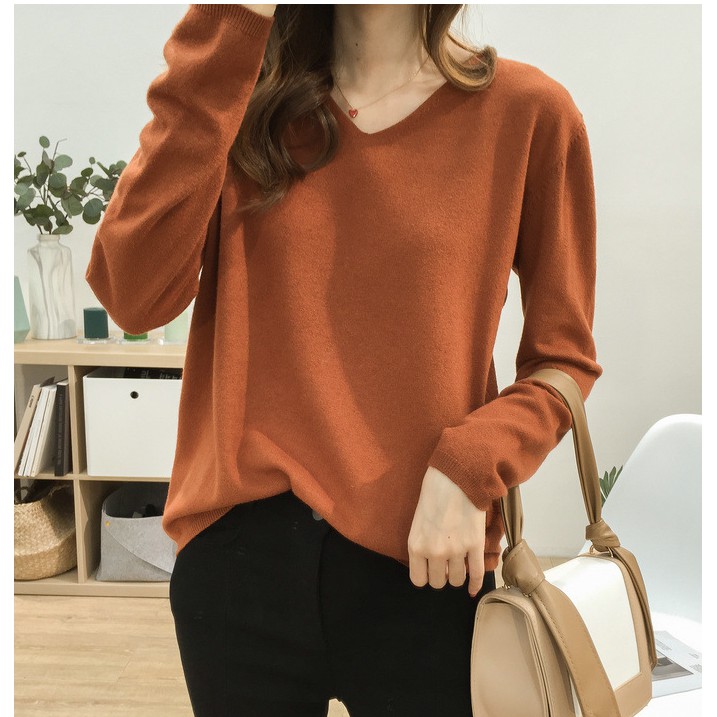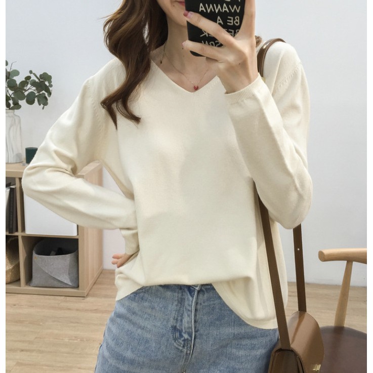 🍓พร้อมส่ง🍍เสื้อไหมพรมแขนยาว คอวี ใส่แล้วดูผอม ผ้านิ่มยืดได้เยอะ 11สี