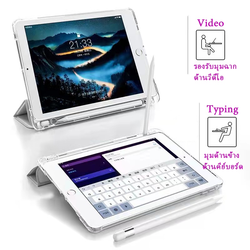 🎀 ใช้สำหรับ case iPad🎀 ใช้สำหรับ Gen10/9/8/7/6/5 Air5/4/3/2/1 9.7" 10.2" 10.5" 10.9" 11" พร้อมช่องเสียบปากกาฝาหลังใส