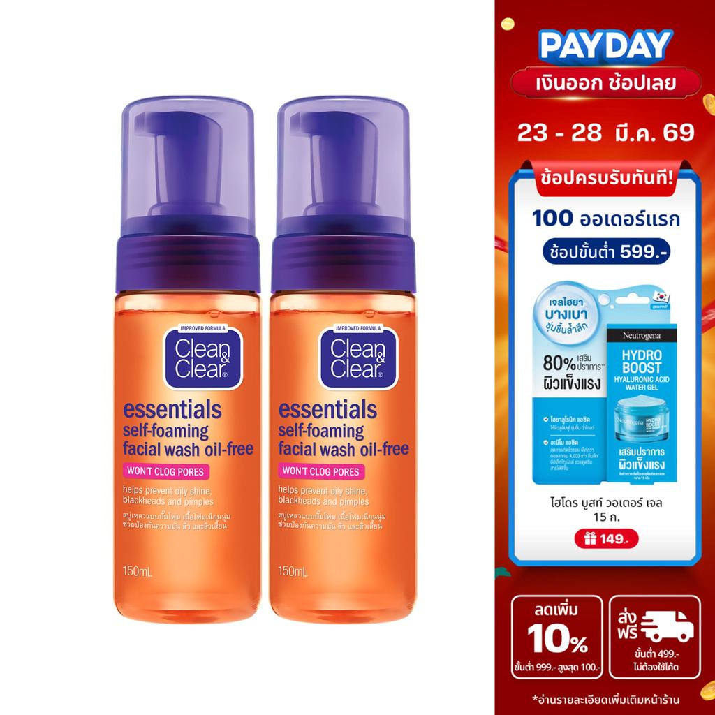 [แพ็คคู่] คลีน แอนด์ เคลียร์ โฟมล้างหน้า เซลฟ์โฟมมิ่ง เฟเชียล วอช 150มล. x 2 Clean & Clear