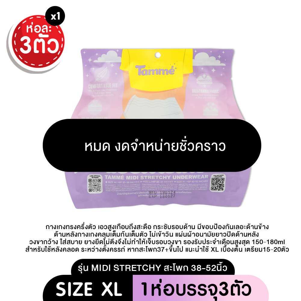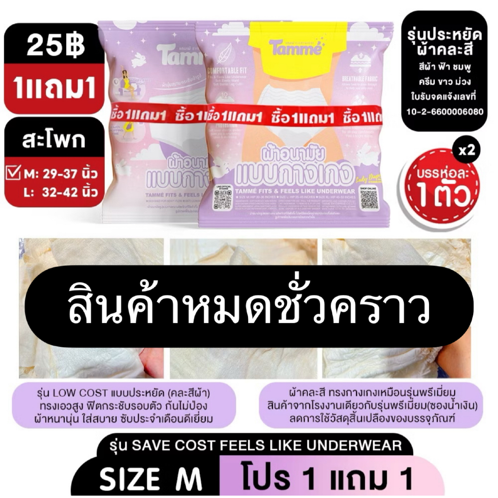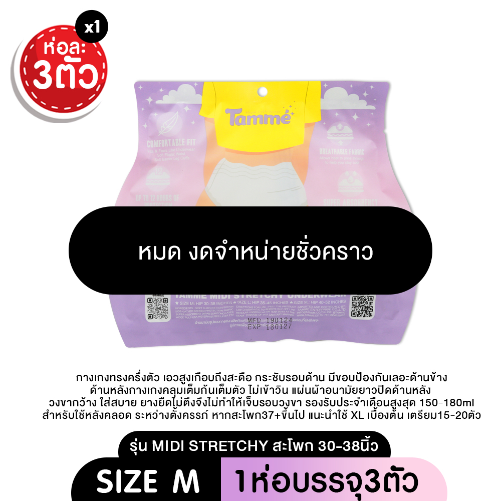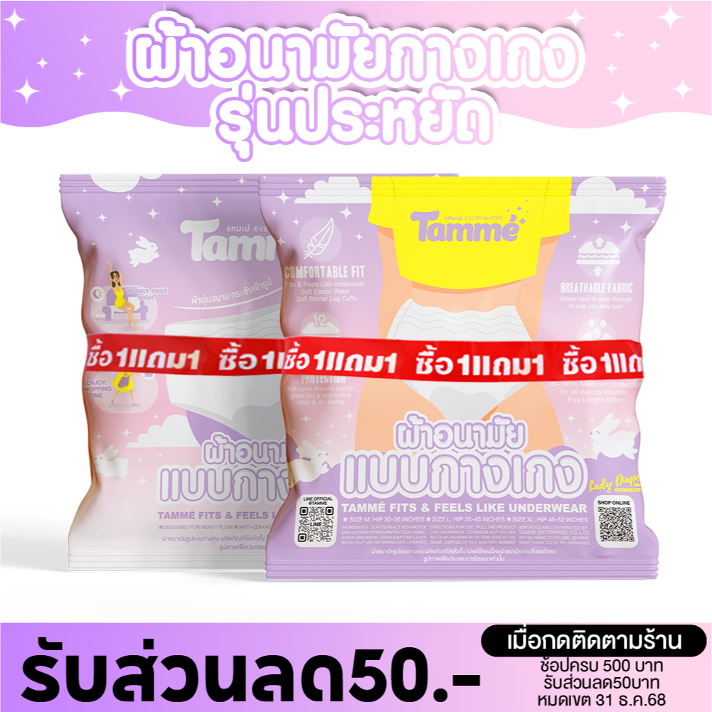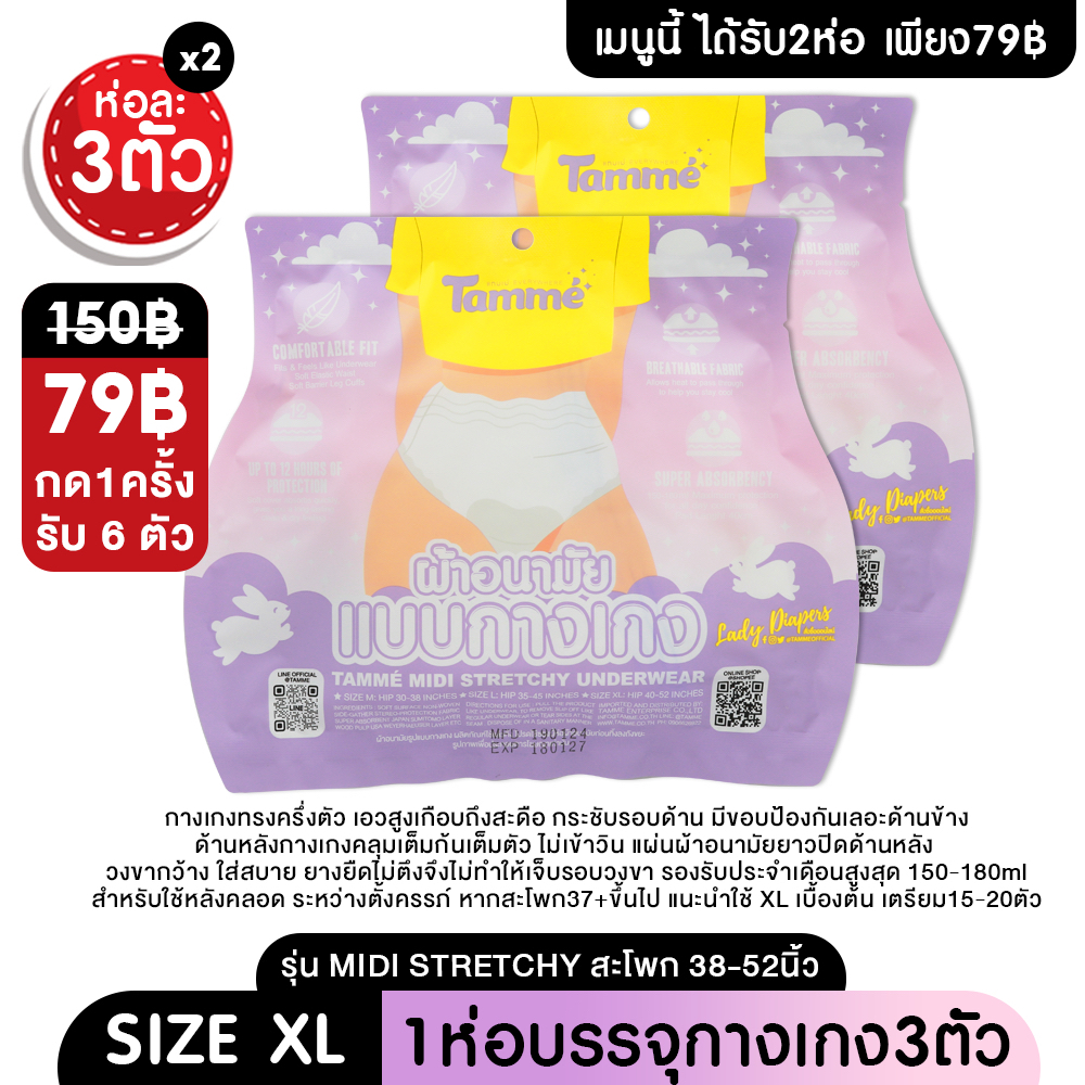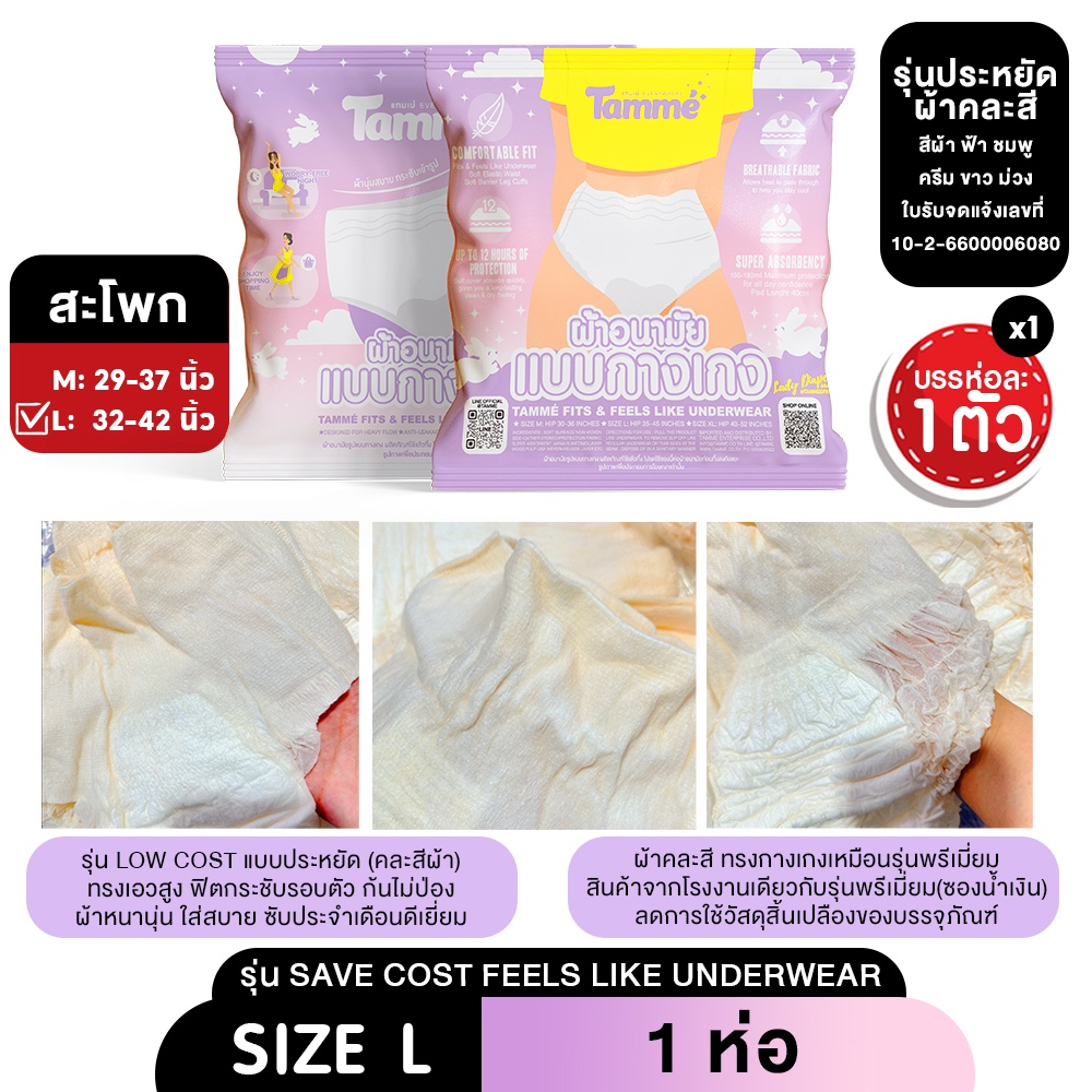 แทมเม่ ผ้าอนามัยแบบกางเกง M-L-XL ใส่หลังคลอดได้ สะโพก 30-52นิ้ว