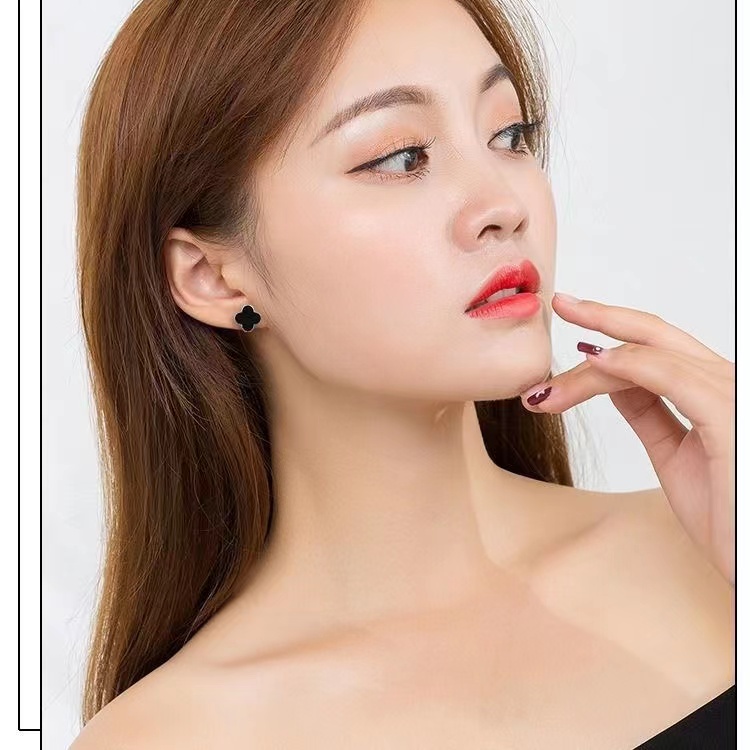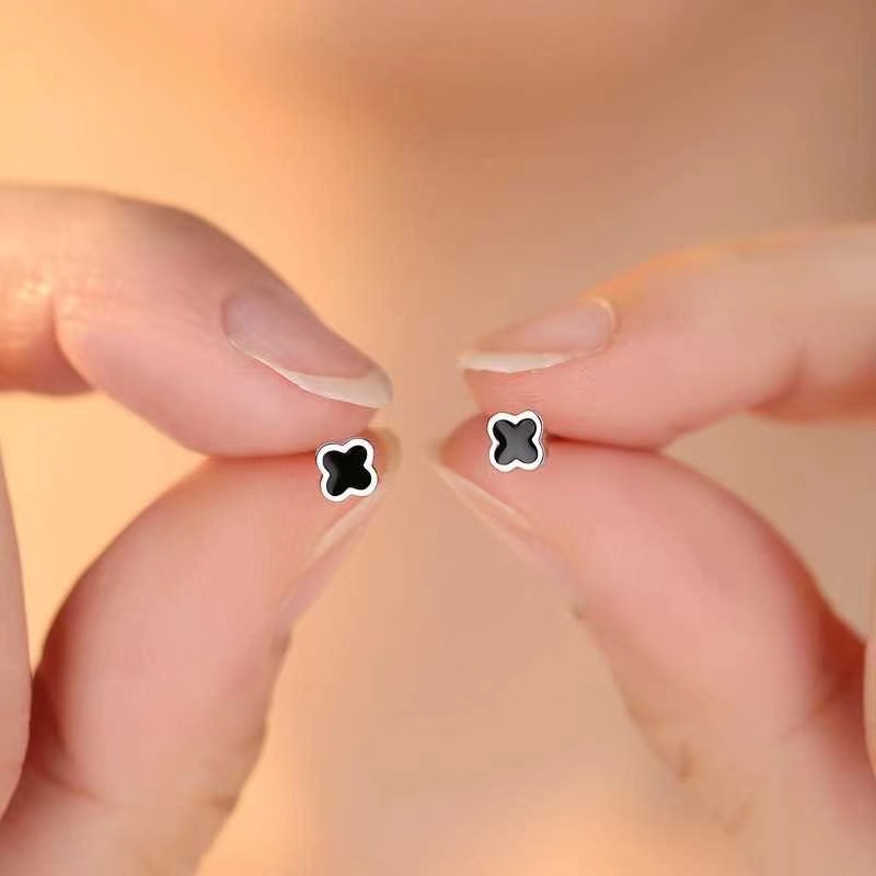 【YY】ต่างหูเข็มเงิน S925 รูปใบโคลเวอร์น่ารัก เรียบง่าย สไตล์เกาหลี สําหรับผู้หญิง