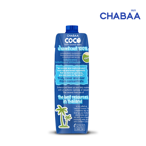 CHABAA น้ำมะพร้าว 100% 1000 มล. ยกลัง( 12 กล่อง )