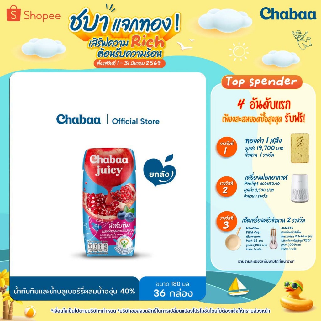 CHABAA น้ำทับทิมและน้ำบลูเบอร์รี่ผสมน้ำองุ่น 40% 180 มล. ยกลัง (36 กล่อง)