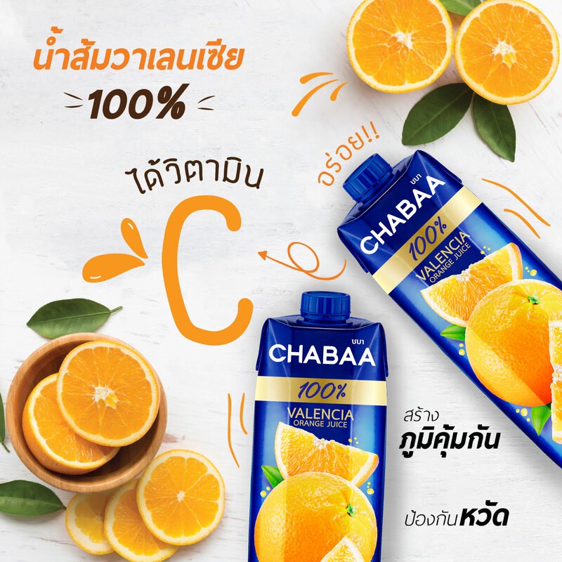 CHABAA น้ำส้มวาเลนเซีย 100% 1000 มล. ยกลัง( 12 กล่อง)