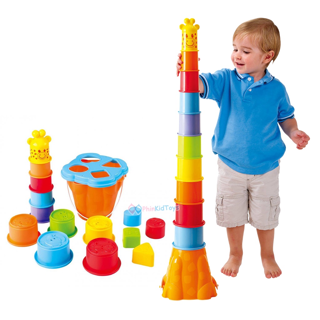 🔥ลดเพิ่ม 10% เก็บโค้ดทักแชท🔥 2in1 Shape Sorting Stack Bucket ถ้วยซ้อน บล็อกหยอด Stacking Cubes Playgo 2388