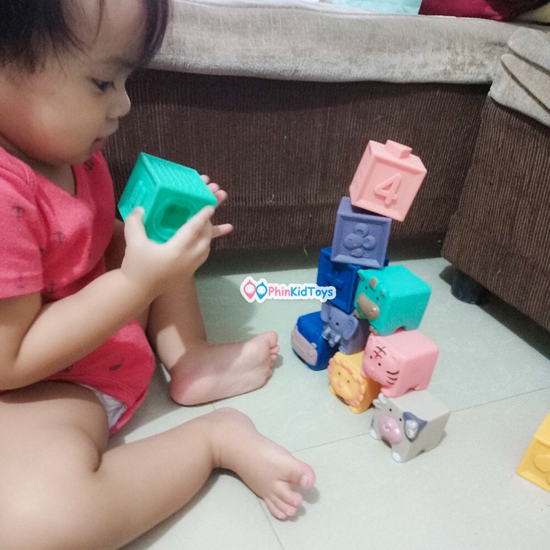 ❤ลดเพิ่ม 10% เก็บโค้ดทักแชท | บล็อกนิ่ม ❤ รูปสัตว์ รูปทรง ตัวเลข ผิวสัมผัส 12 ชิ้น Soft Building Block *ไม่มีถุงตาข่าย