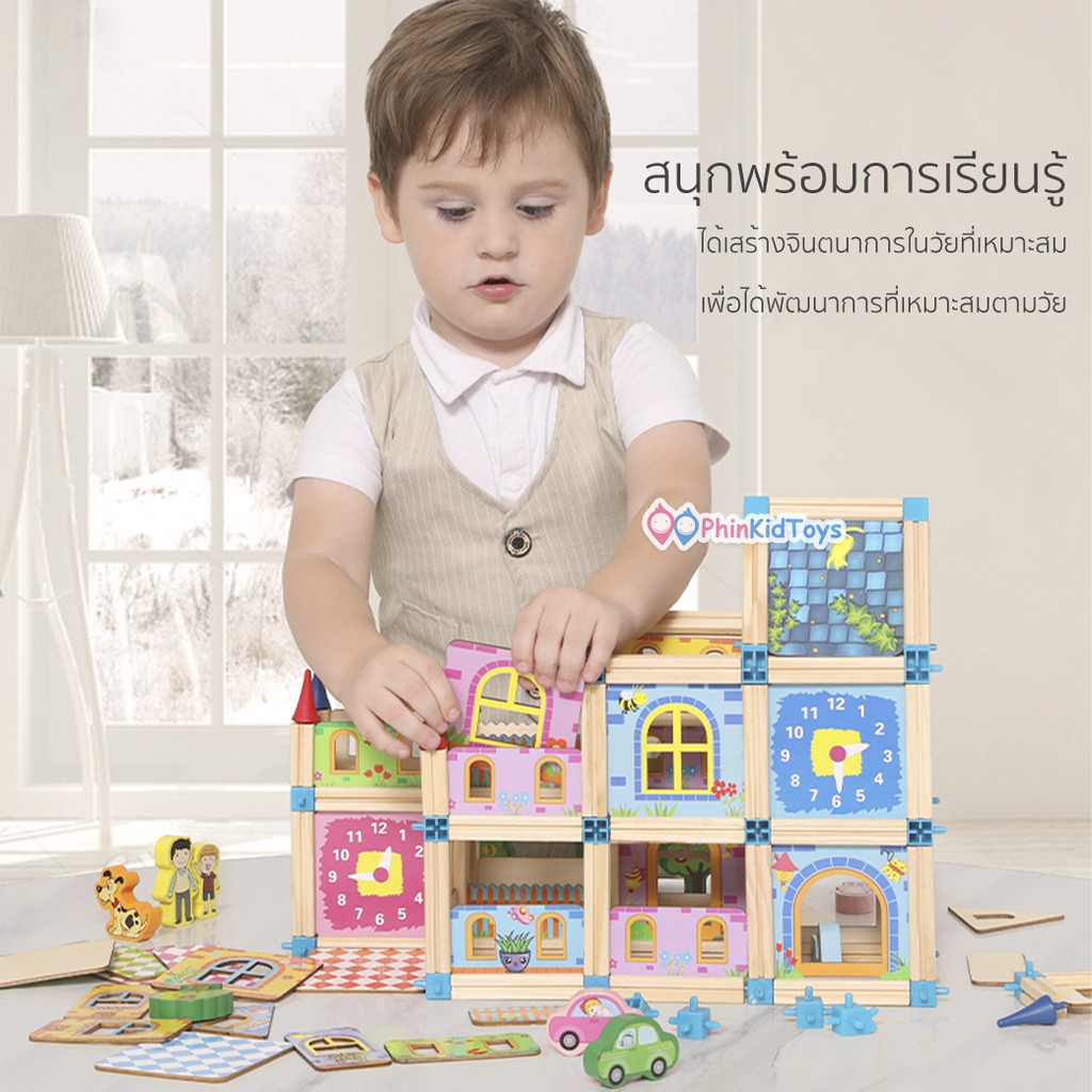 ❤ลดเพิ่ม 10% เก็บโค้ดทักแชท | ส่งจากไทย ❤ บล็อกไม้สร้างเมือง ชุดสร้างบ้าน อุปกรณ์แน่น ปลอดภัยสำหรับเด็ก ของเล่นไม้