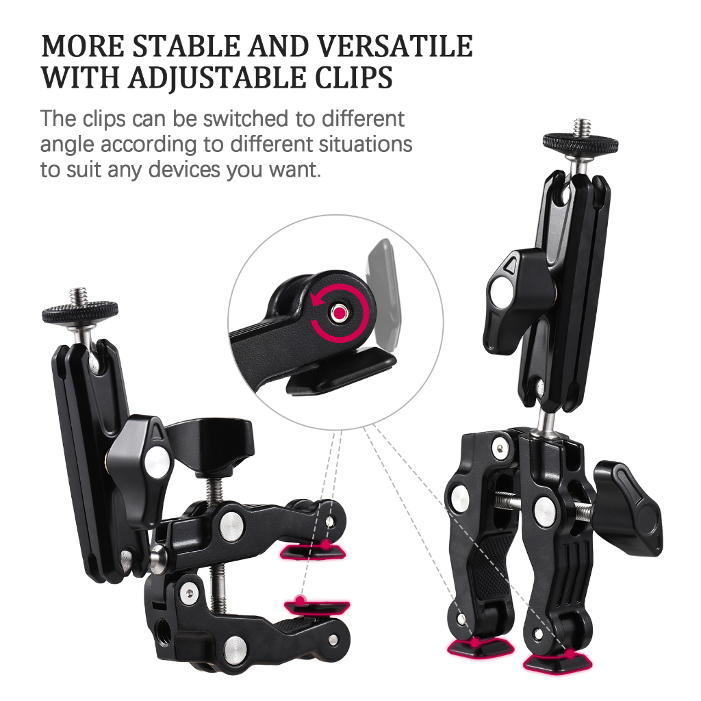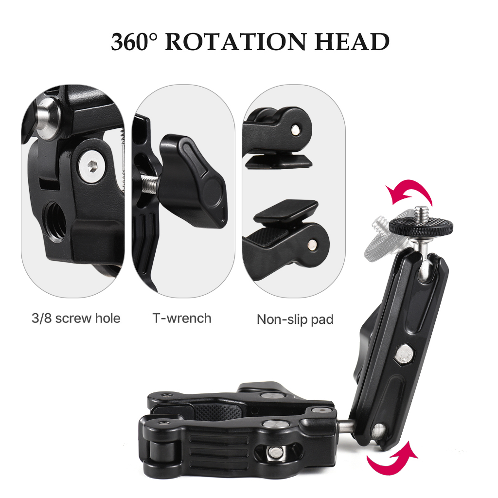 อะแดปเตอร์แคลมป์ยึดแฮนด์บาร์ อเนกประสงค์ 360 องศา°หัวบอลแบริ่งอะลูมิเนียมอัลลอย 1.5 กก. 3.3 ปอนด์ พร้อมสกรู 1/4 นิ้ว และเกลียว 3/8 นิ้ว