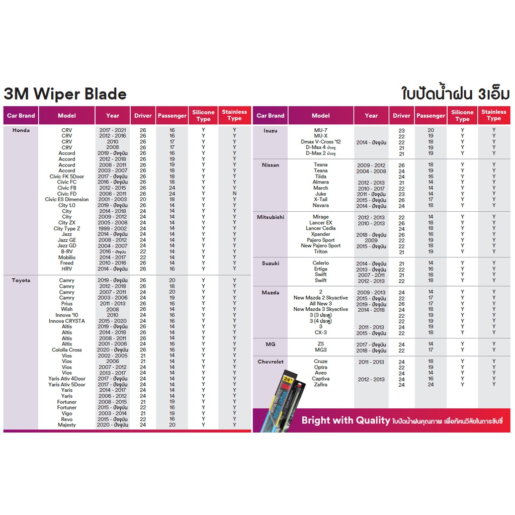 ใบปัดน้ำฝน ราคาโรงงาน !! คุณภาพดี Wiper Blade มีคู่ให้เลือก 14,16,17,18,19,20,21,22,24,26 นิ้ว รุ่นซิลิโคน Frameless