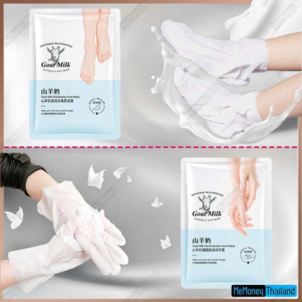 มาส์กมือ มาส์กเท้า Goat Milk สารสกัดจากนมแพะ บำรุงผิวลดเลือนริ้วรอยที่มือและเท้า เพิ่มความชุ่มชื้มให้ผิว นมแพะ