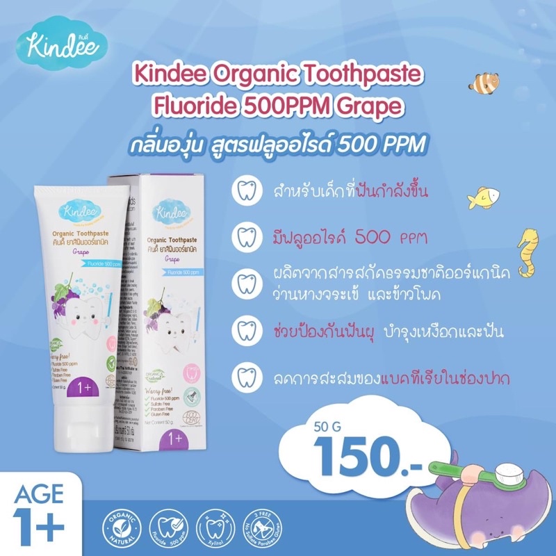 ❤️ใช้โค ้ดส่งฟรี SHOPEE ได้จ้า❤️ลอตใหม่ Exp06/2026❤️ Kindee คินดี้ ยาสีฟันออแกนิค Kindee oral gel toothpaste ฟลูออไรด์