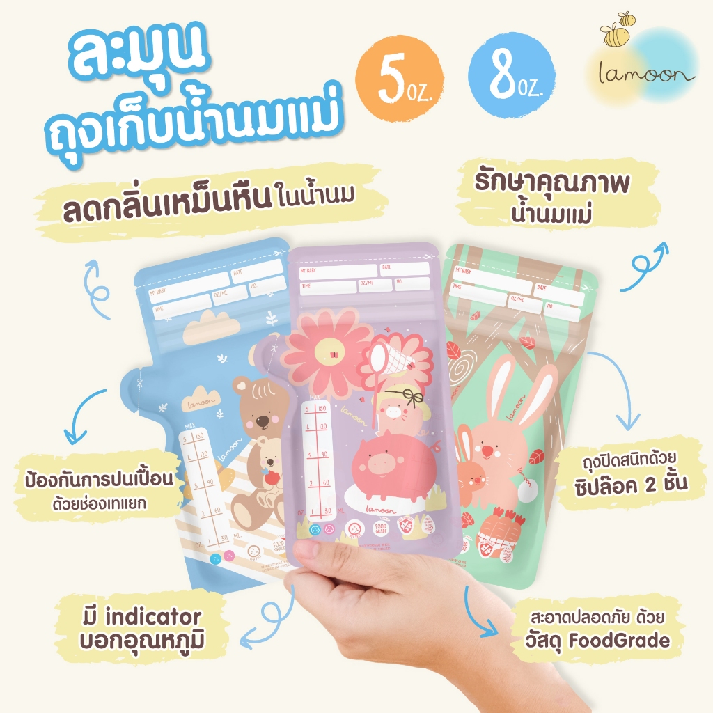 ชื้อ3ฟรี1 LAMOON ละมุน ถุงเก็บน ้ำนมแม่ขนาด 5oz/8oz