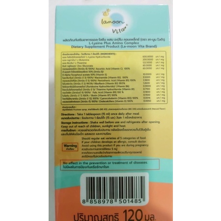 (LA02) Lamoon Yummi-O Lysine, Amino Complex วิตามินที่จะช่วยเจริญอาหาร ทำให้กินเก่ง Exp 11/2026