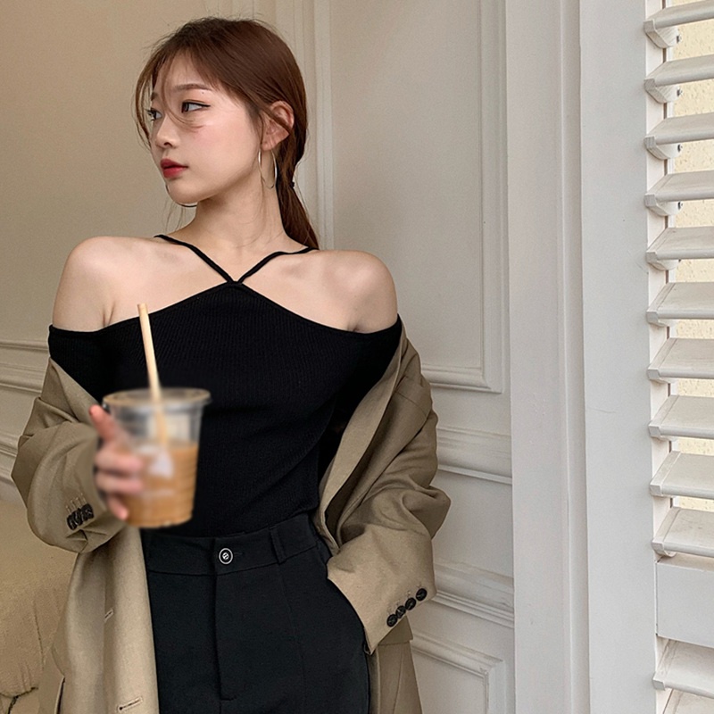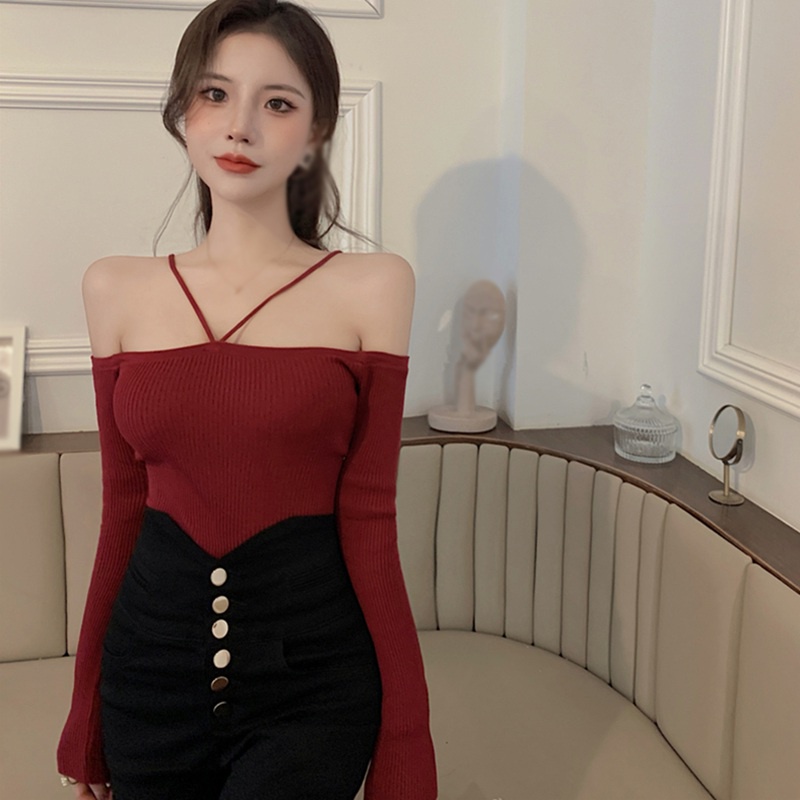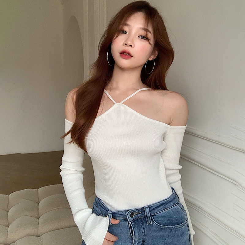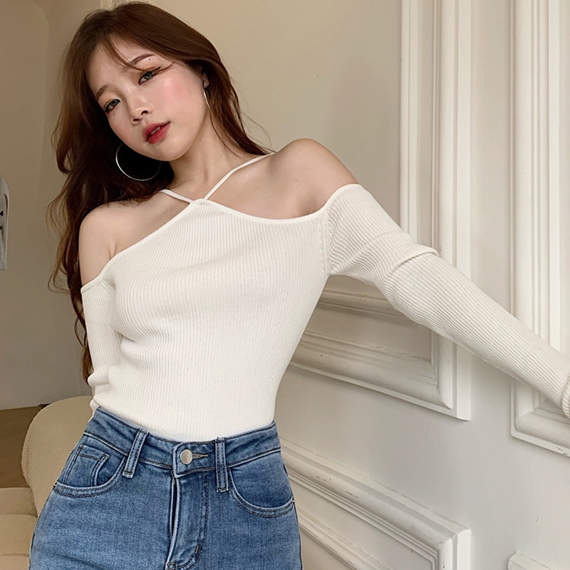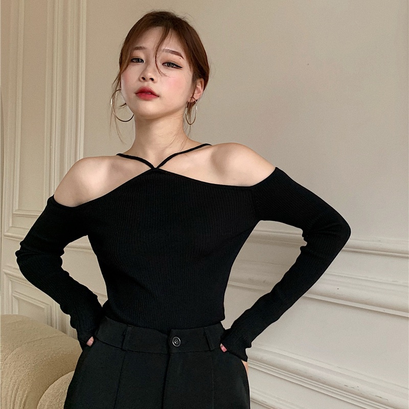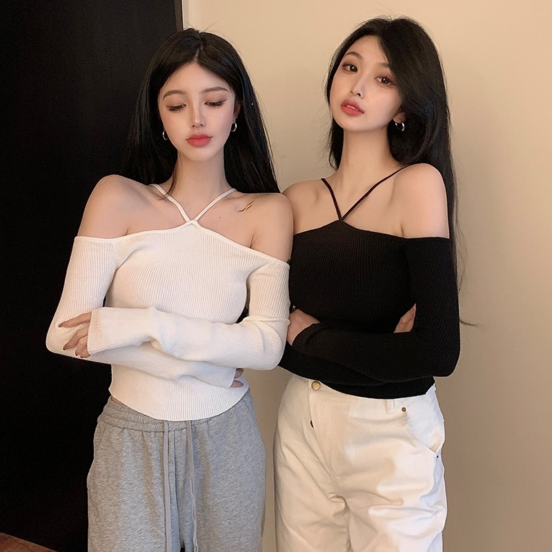เสื้อผ้าถัก แขนยาว เปิดไหล่ เซ็กซี่ สําหรับผู้หญิง