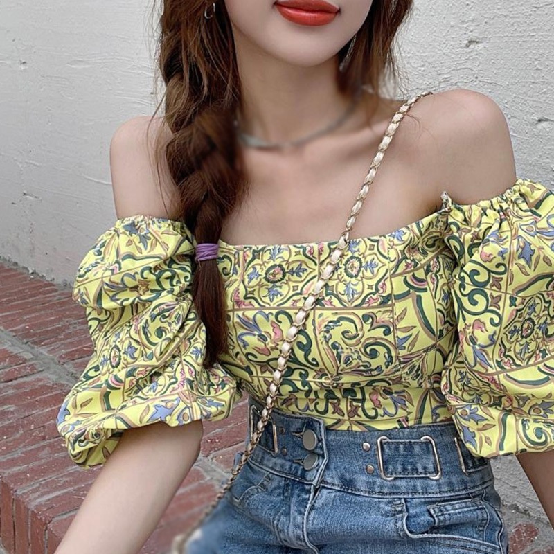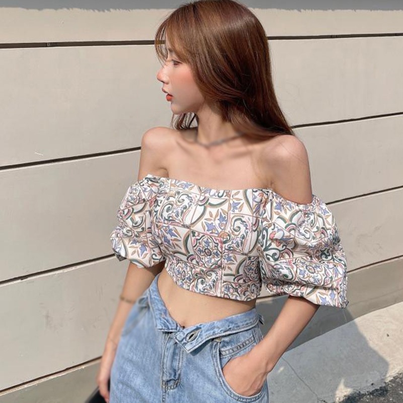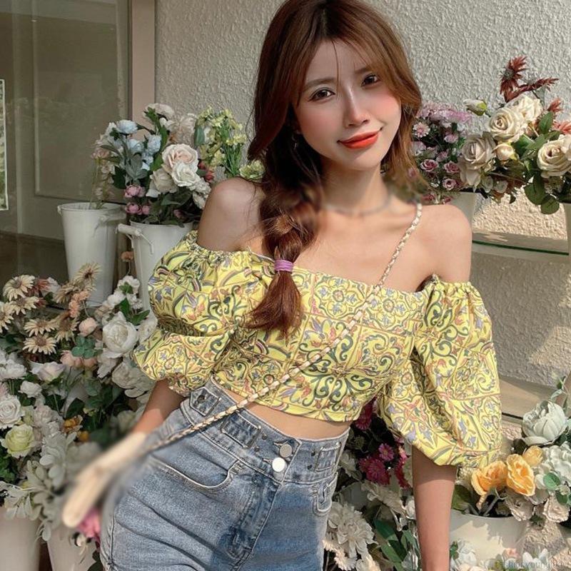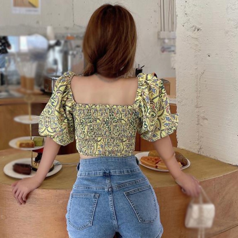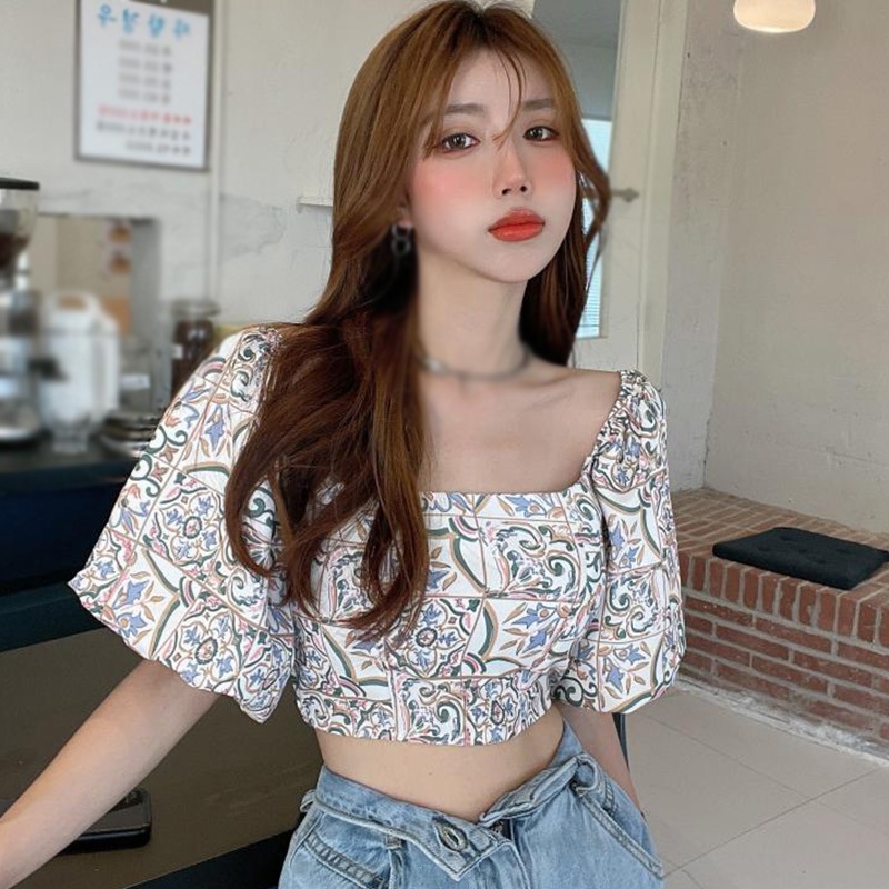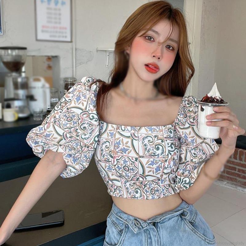 เสื้อชีฟอง แขนสั้น คอสี่เหลี่ยม พิมพ์ลายดอกไม้ สําหรับผู้หญิง