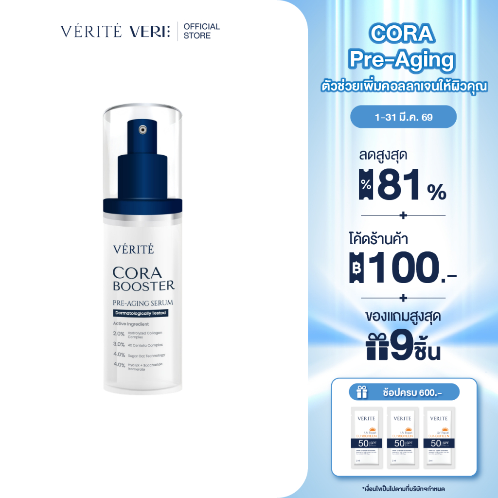 Verite Cora Booster 30ml คอลลาเจนเซรั่ม 30 มล. ผิวแลดูอ่อนวัย ริ้วร้อยตื้นขึ้น
