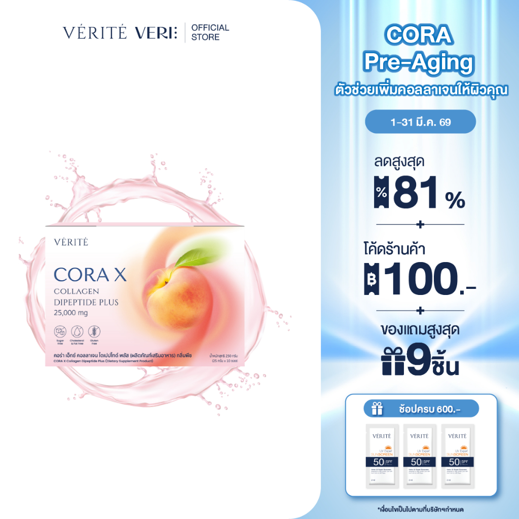 Verite Cora X Collagen Dipeptide Plus ผลิตภัณฑ์เสริมอาหาร เพื่อการดูแลผิวพรรณ สุขภาพจากภายใน