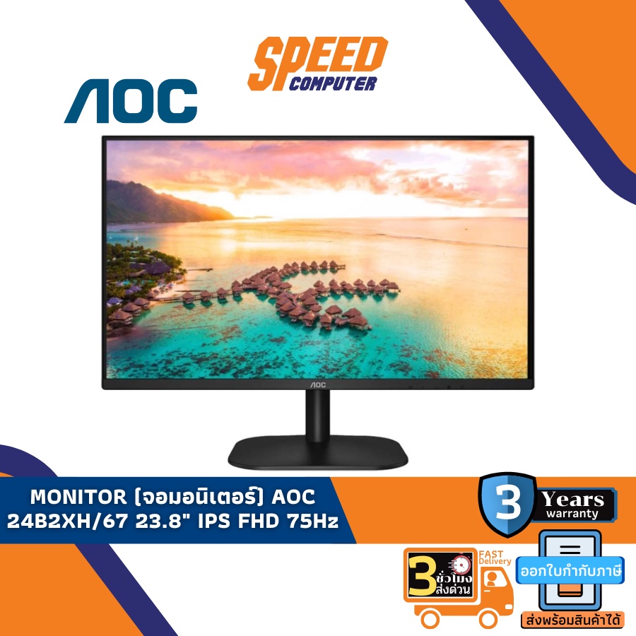 [พร้อมสาย อุปกรณ์ครบ] MONITOR (จอมอนิเตอร์) AOC 23.8 24B2XH/67(HDMI), 75Hz IPS by Speedcom