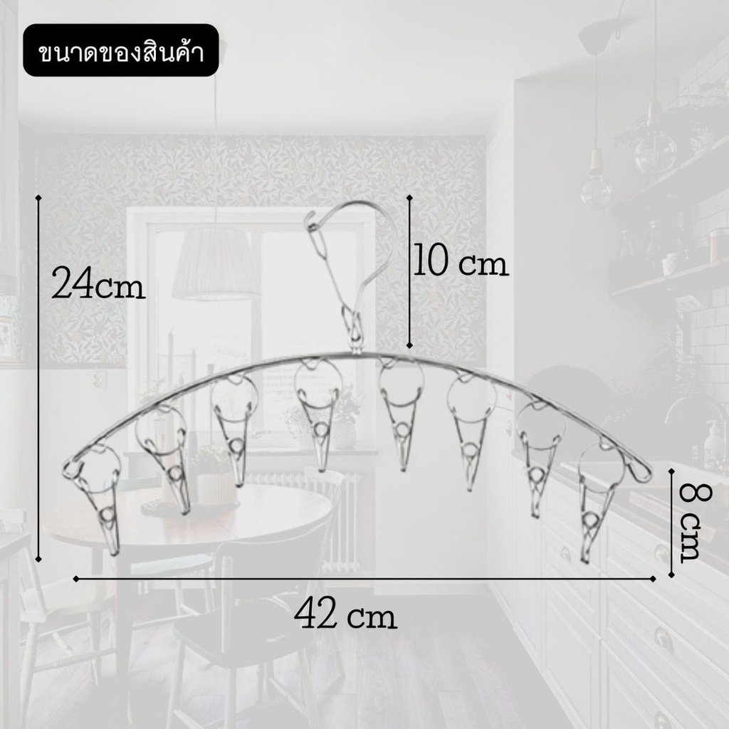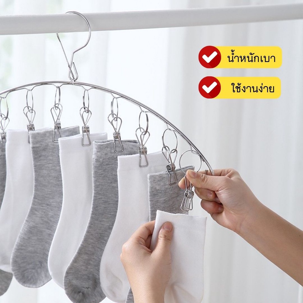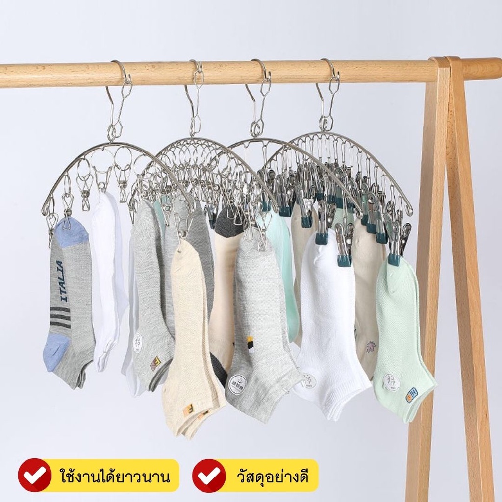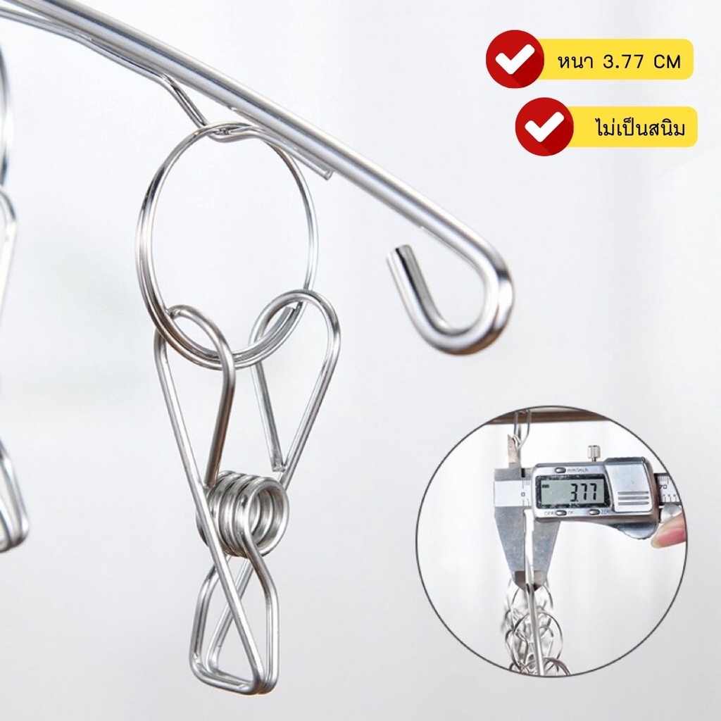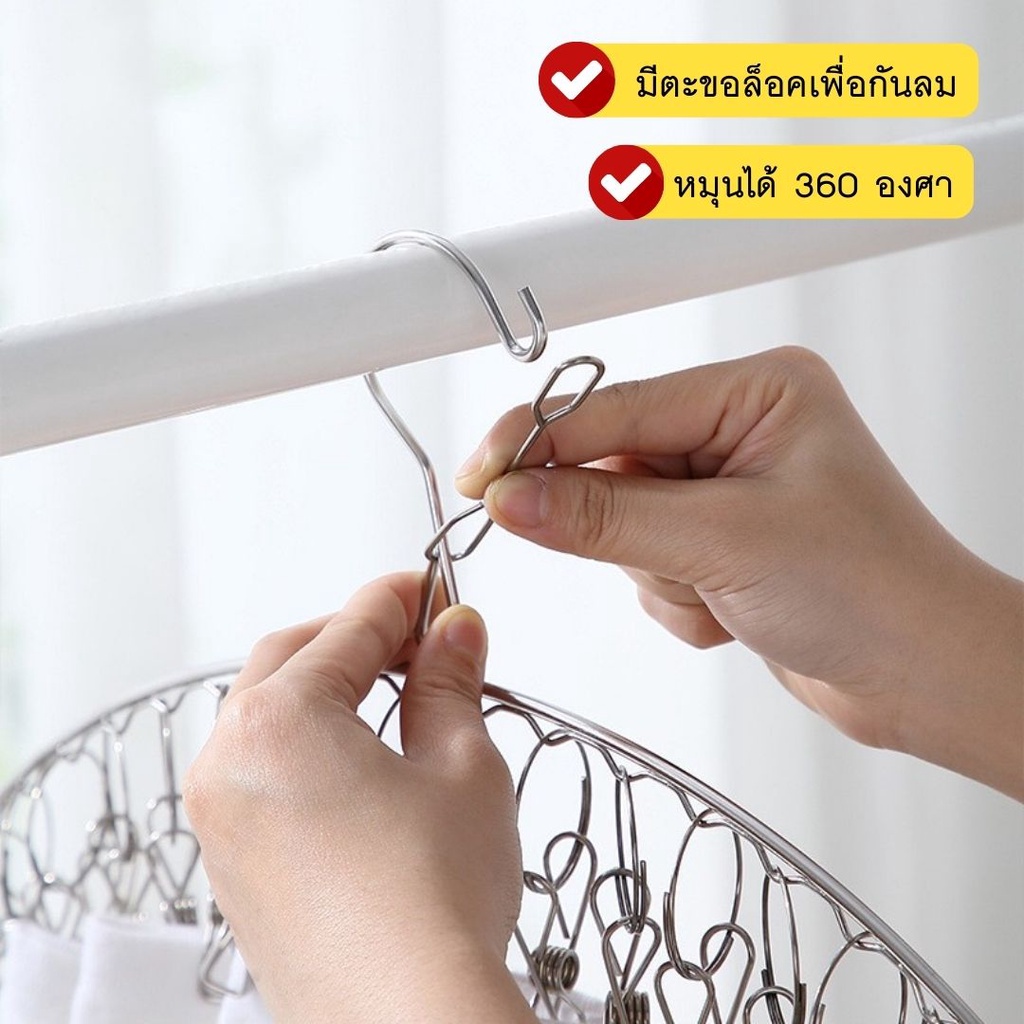ที่หนีบผ้า พวงหนีบผ้า แบบโค้ง ผลิตจากสแตนเลสแท้ ไม่เป็นสนิม ทนแดด มีตะขอล็อค ขนาด 42 cm