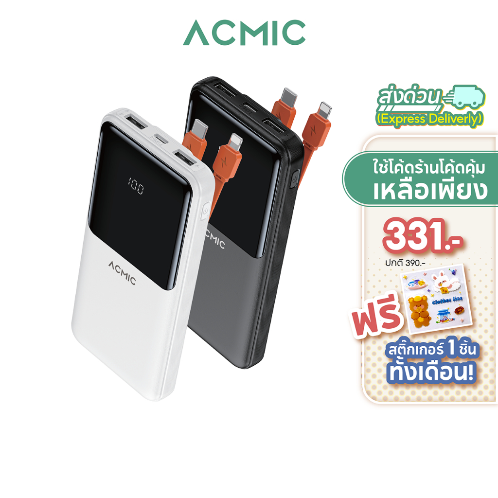 ACMIC AP10-06 PRO Powerbank 10000mAh พาวเวอร์แบงค์มีสายในตัวType-C, L Cable จอLED ประกัน1ปี