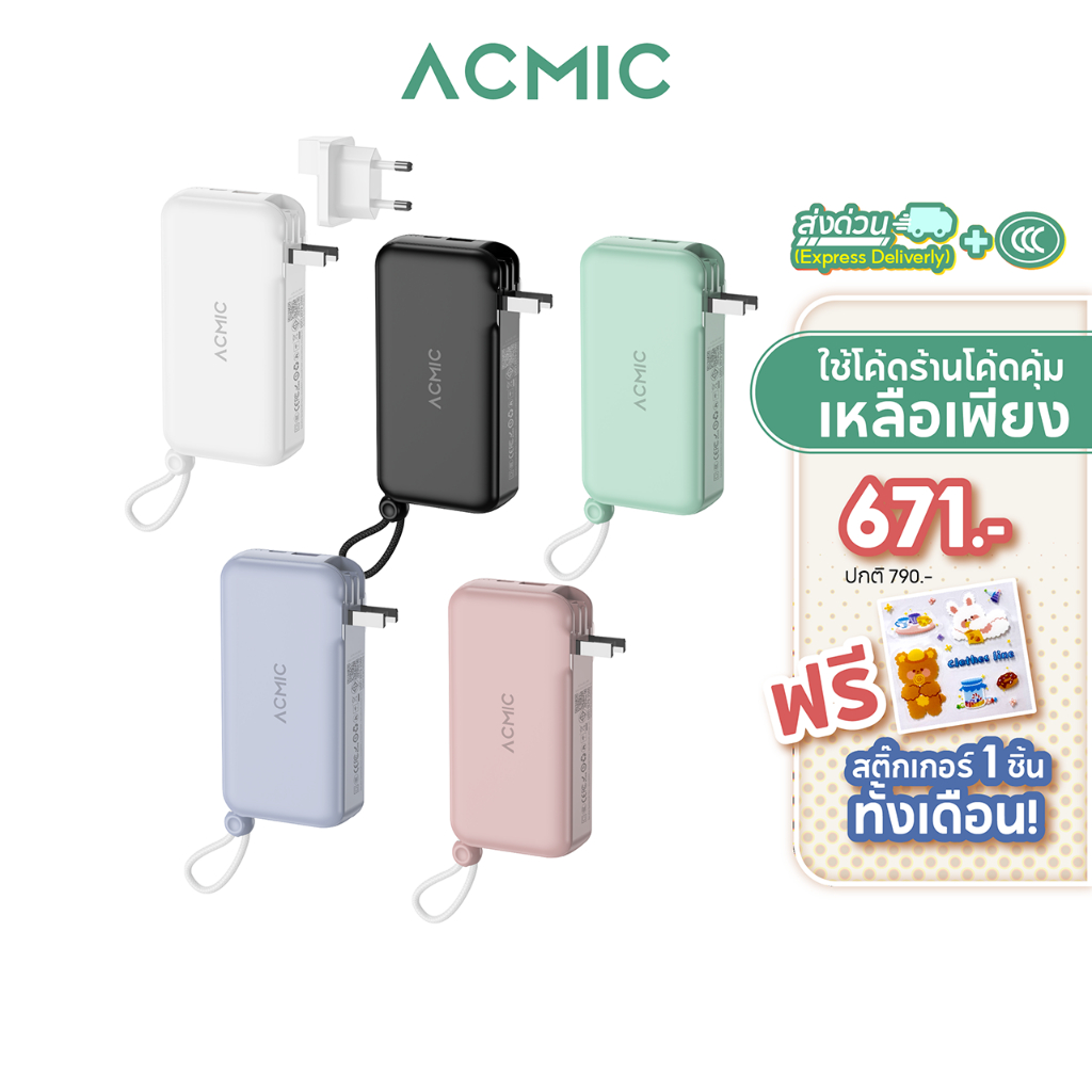 [มีCCC ส่งด่วน] ACMIC APC10-08PD Powerbank10000mAh พาวเวอร์แบงค์ ชาร์จเร็วPD20W สายชาร์จในตัว ประกัน2ปี