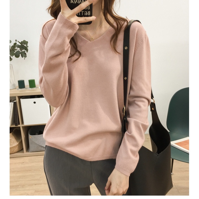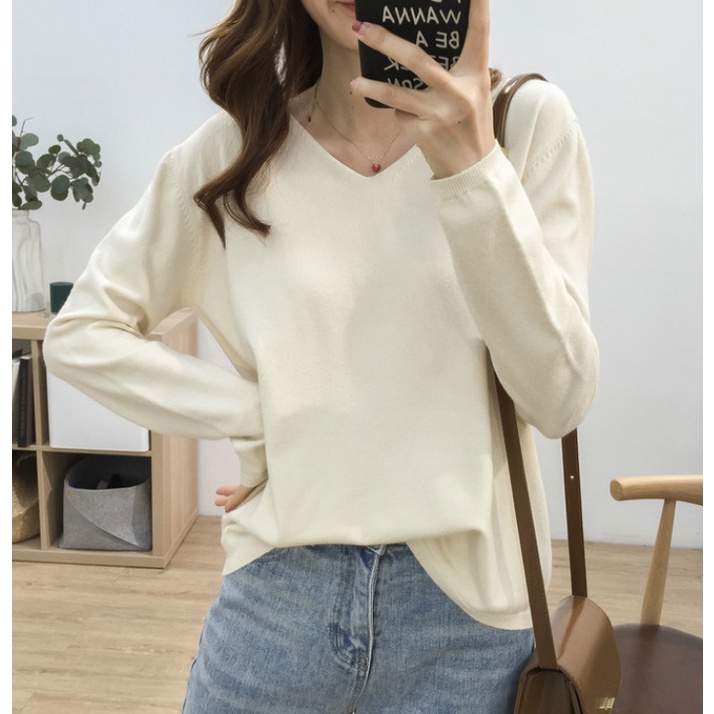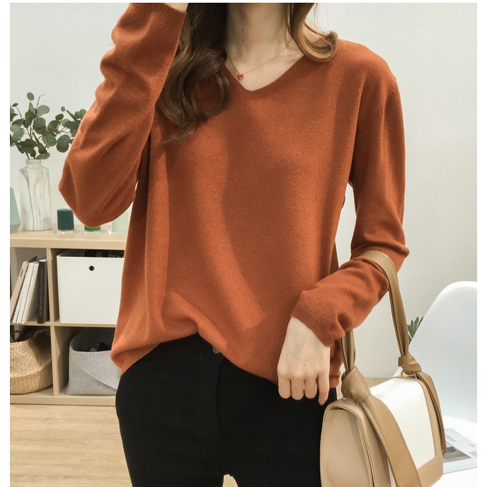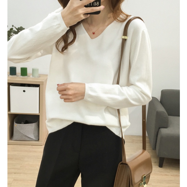 🍓พร้อมส่ง🍍เสื้อไหมพรมแขนยาว คอวี ใส่แล้วดูผอม ผ้านิ่มยืดได้เยอะ 11สี