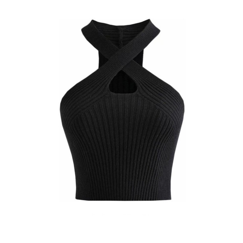 ครอป-ไขว้หน้า🔥ถูกมาก❗️เสื้อครอป เสื้อครอปสายเดี่ยวไหมพรม คอไขว้หน้าเซ็กซี่ เสื้อยืดครอป เสื้อครอปเอวลอย ครอปเอวลอย